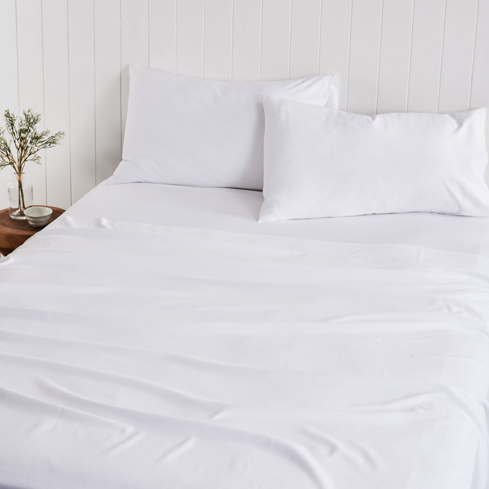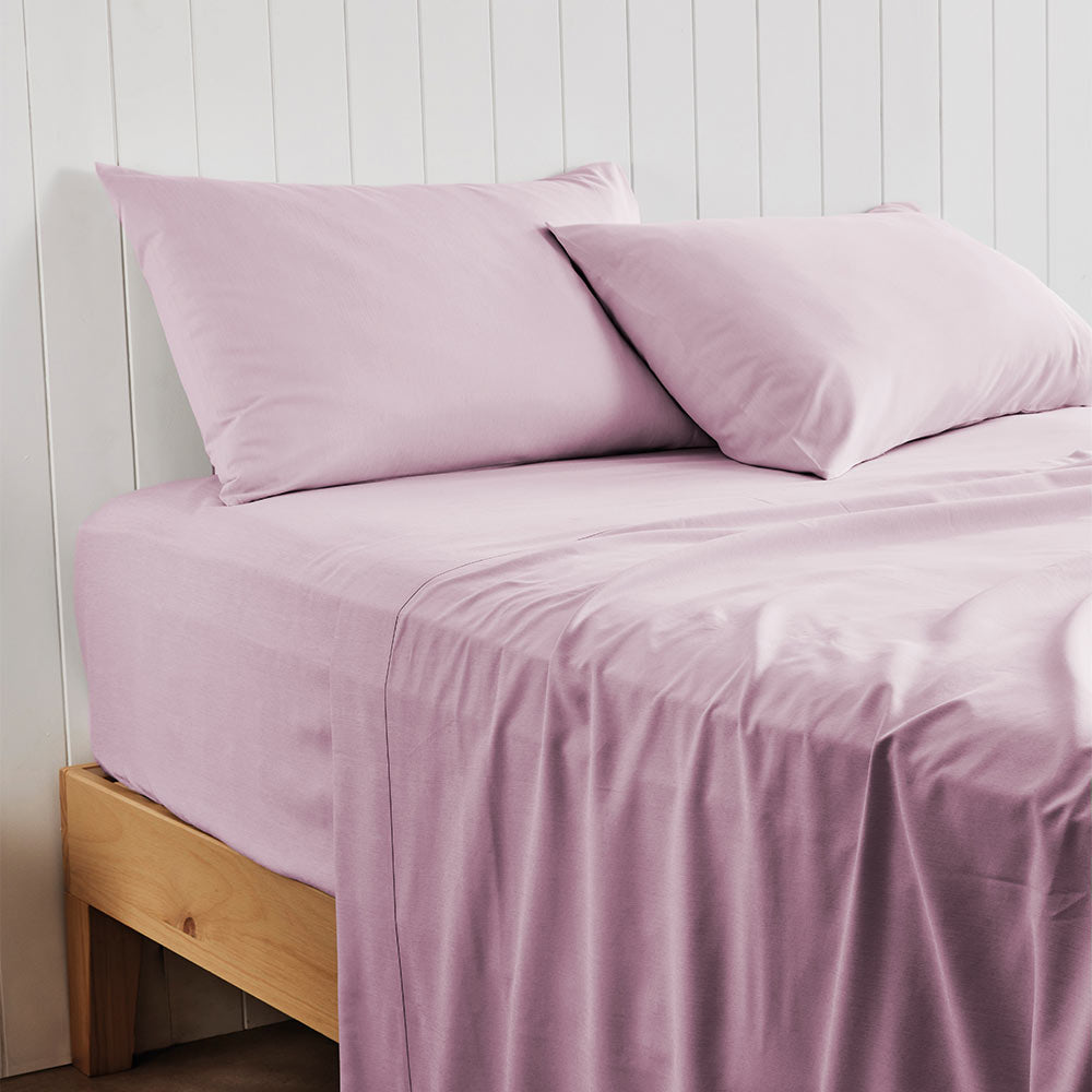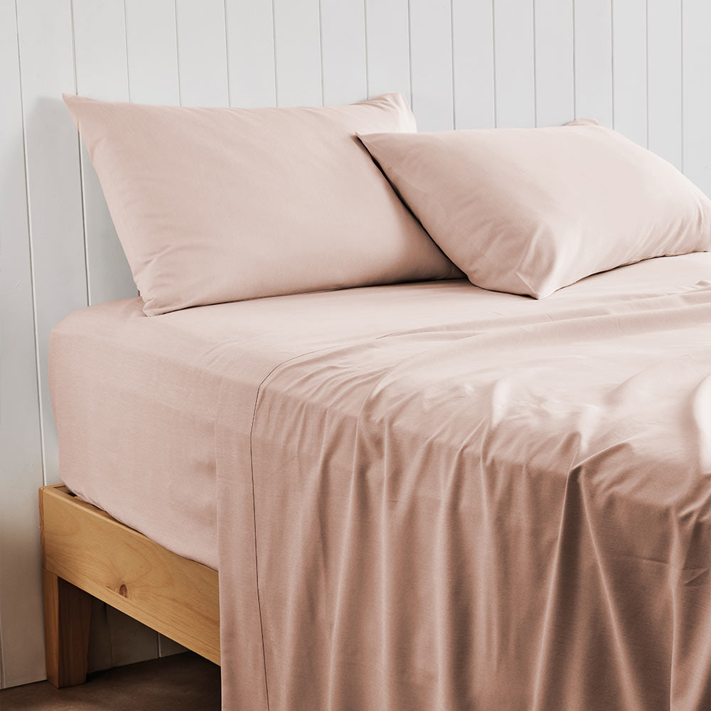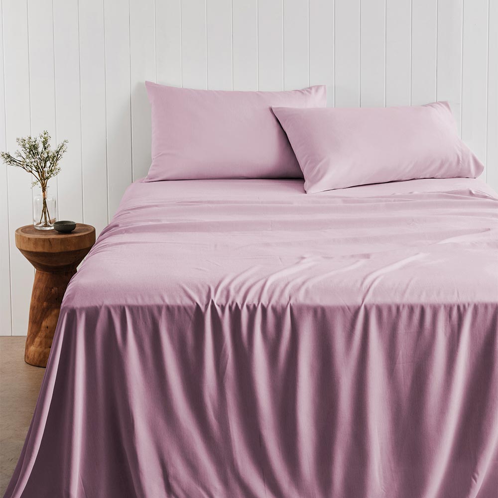 Create a bedroom you will love retreating to at any time of the day with the light and buttery soft bamboo blend sheets from Adorn Living. Crafted from bamboo and microfibre, these sheets will instantly relax your mood at first touch. Naturally hypoallergenic and antibacterial, this bamboo blend is excellent for those with sensitive skin or allergies. This sheet set contains thermoregulating properties, perfect for year-round use. The Adorn Living Bamboo Blend Sheet Sets include a fitted sheet, flat sheet, and pillowcases. Refer to our Size Guide for more details. Styling is made easy with seven on-trend colours to choose from: Morocco, Green Tea, Lilac, Dusty Blue, Nude Pink, White and Moss. Complete the look with our range of Adorn Living Quilt Covers and Throws.