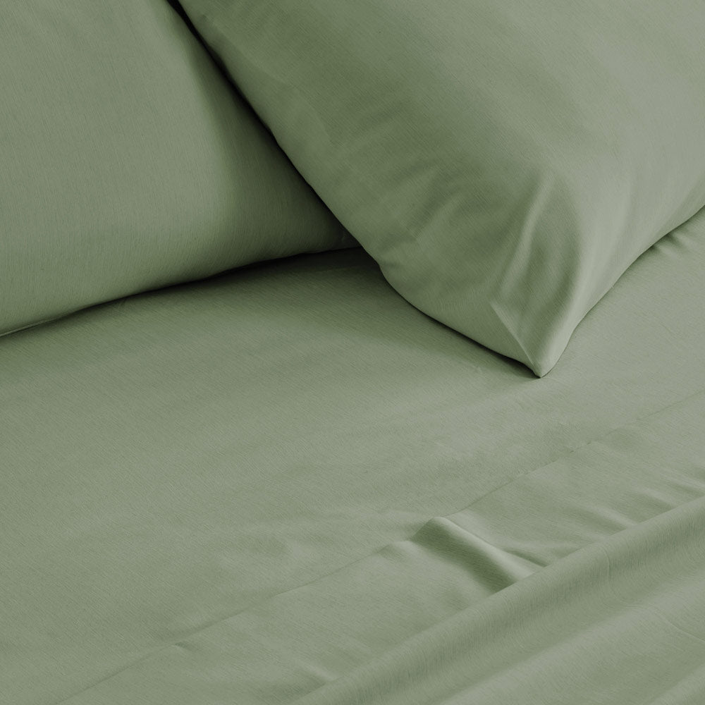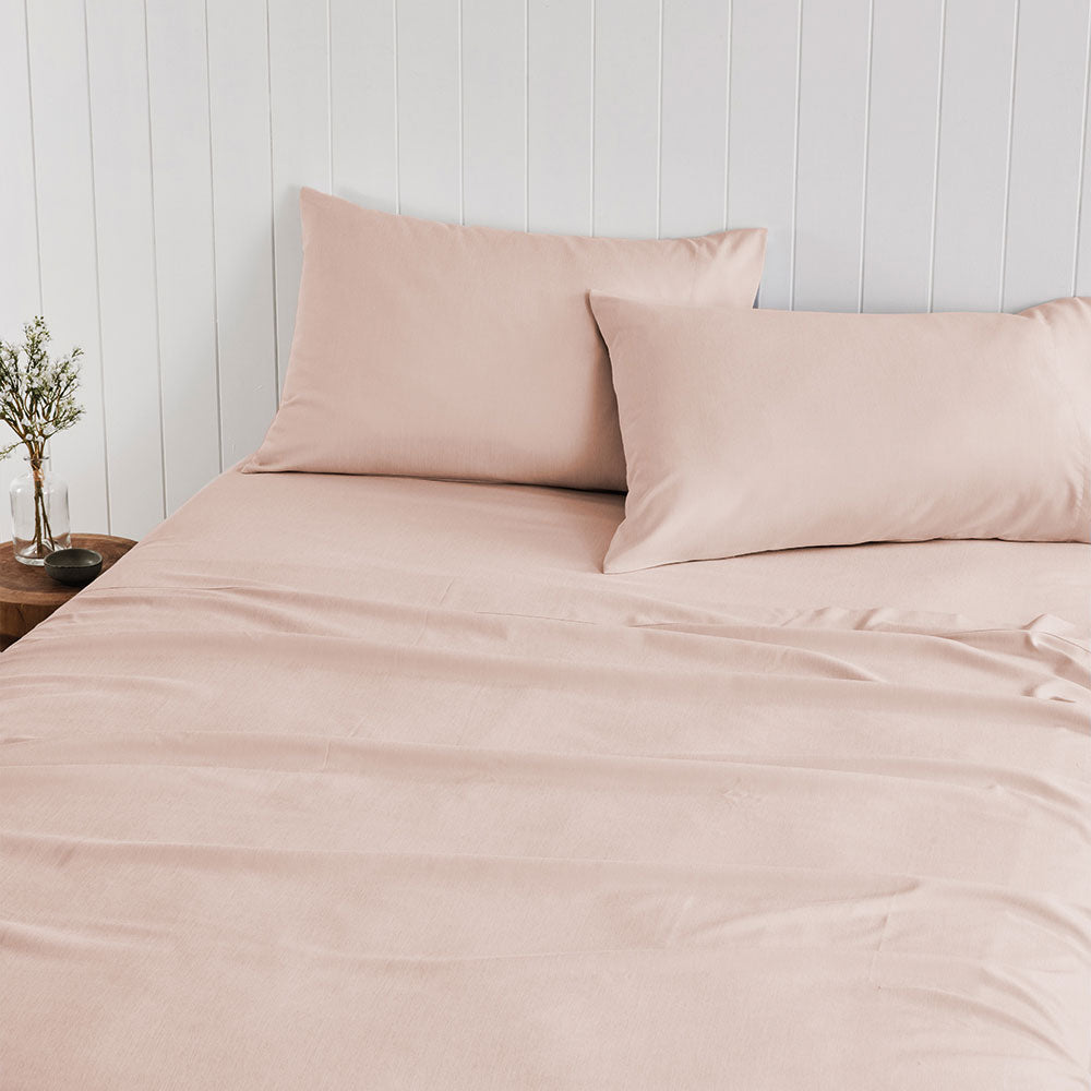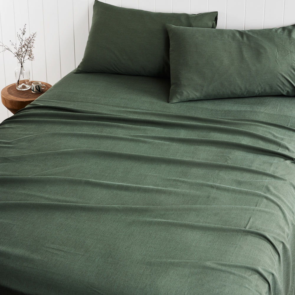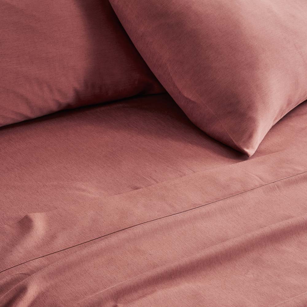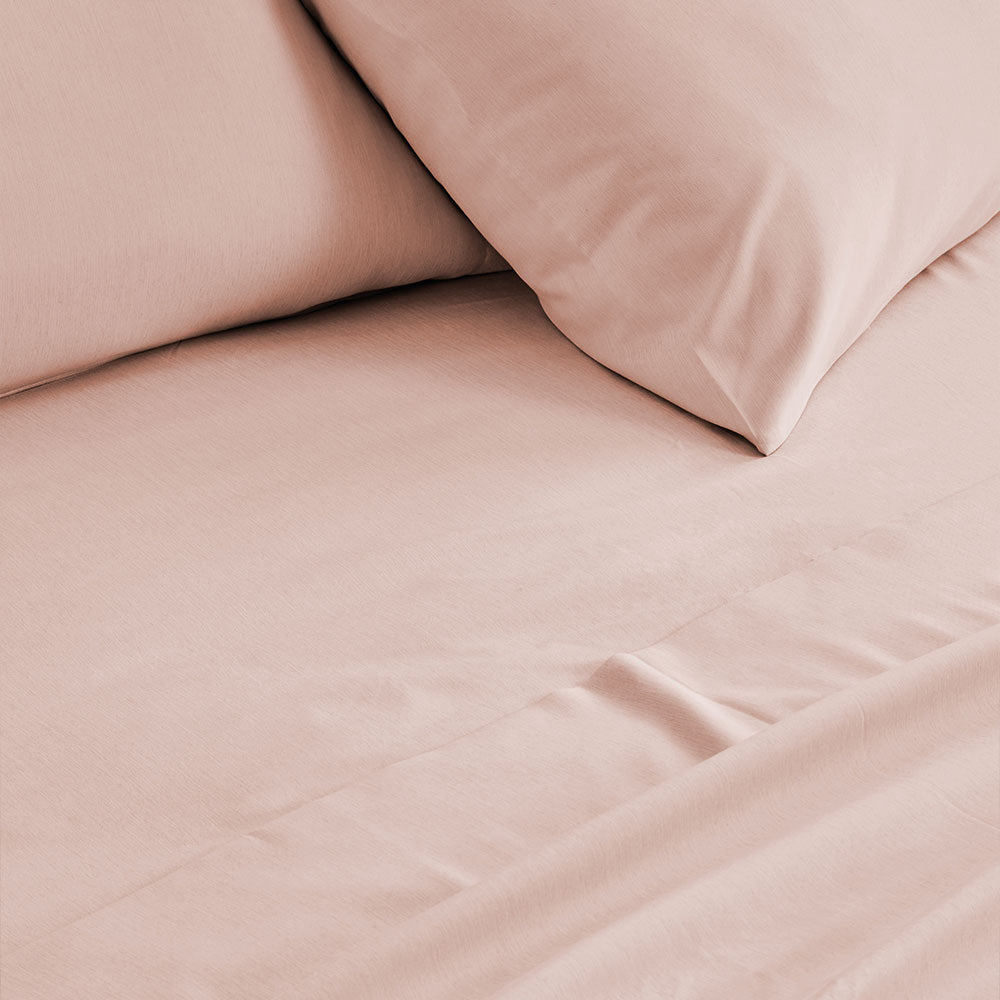 Create a bedroom you will love retreating to at any time of the day with the light and buttery soft bamboo blend sheets from Adorn Living. Crafted from bamboo and microfibre, these sheets will instantly relax your mood at first touch. Naturally hypoallergenic and antibacterial, this bamboo blend is excellent for those with sensitive skin or allergies. This sheet set contains thermoregulating properties, perfect for year-round use. The Adorn Living Bamboo Blend Sheet Sets include a fitted sheet, flat sheet, and pillowcases. Refer to our Size Guide for more details. Styling is made easy with seven on-trend colours to choose from: Morocco, Green Tea, Lilac, Dusty Blue, Nude Pink, White and Moss. Complete the look with our range of Adorn Living Quilt Covers and Throws.