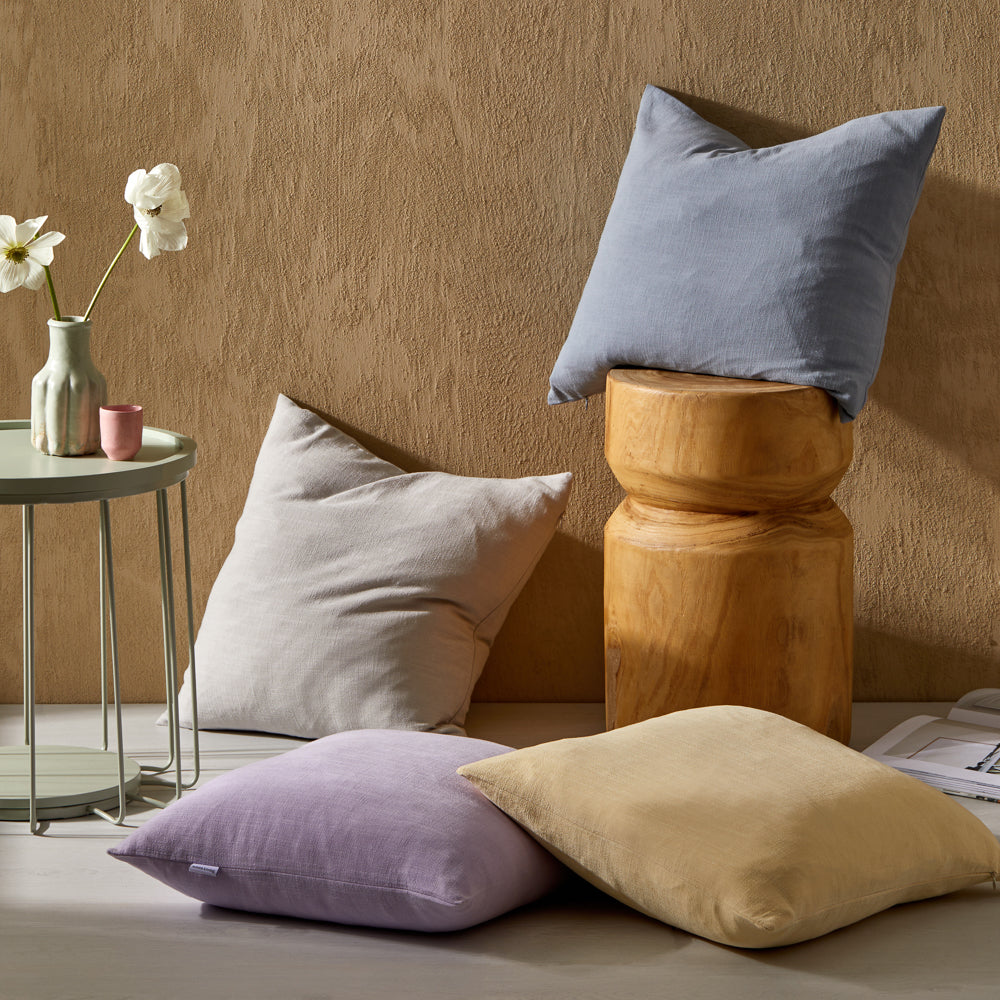 This cushion is your new everyday essential décor piece. Crafted using a linen / cotton blend, the Essential Cushion is perfectly designed to mix and match with any bedding design. The stonewash cotton is breathable and continues to get softer with every use. The Adorn Living® Essential Cushion comprises of one 45 x 45cm cushion with a discreet invisible zip closure to keep the inner nice and secure. Available in eight fashionable colours: Sand, Denim, Grey, Olive, Raspberry, Lilac, Butter and Black. Perfect for styling throughout the home the cushion will seamlessly coordinate with the Adorn Living® quilt covers and throws.