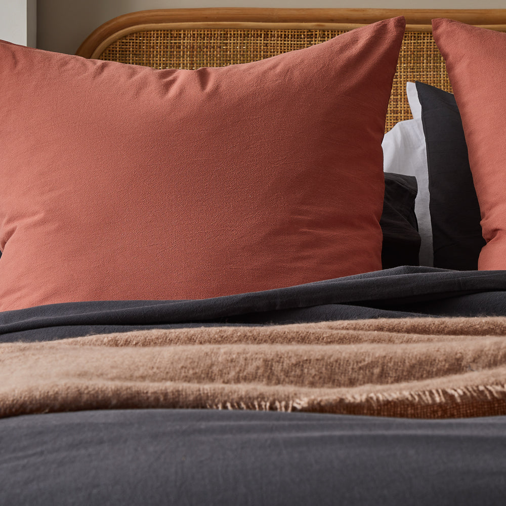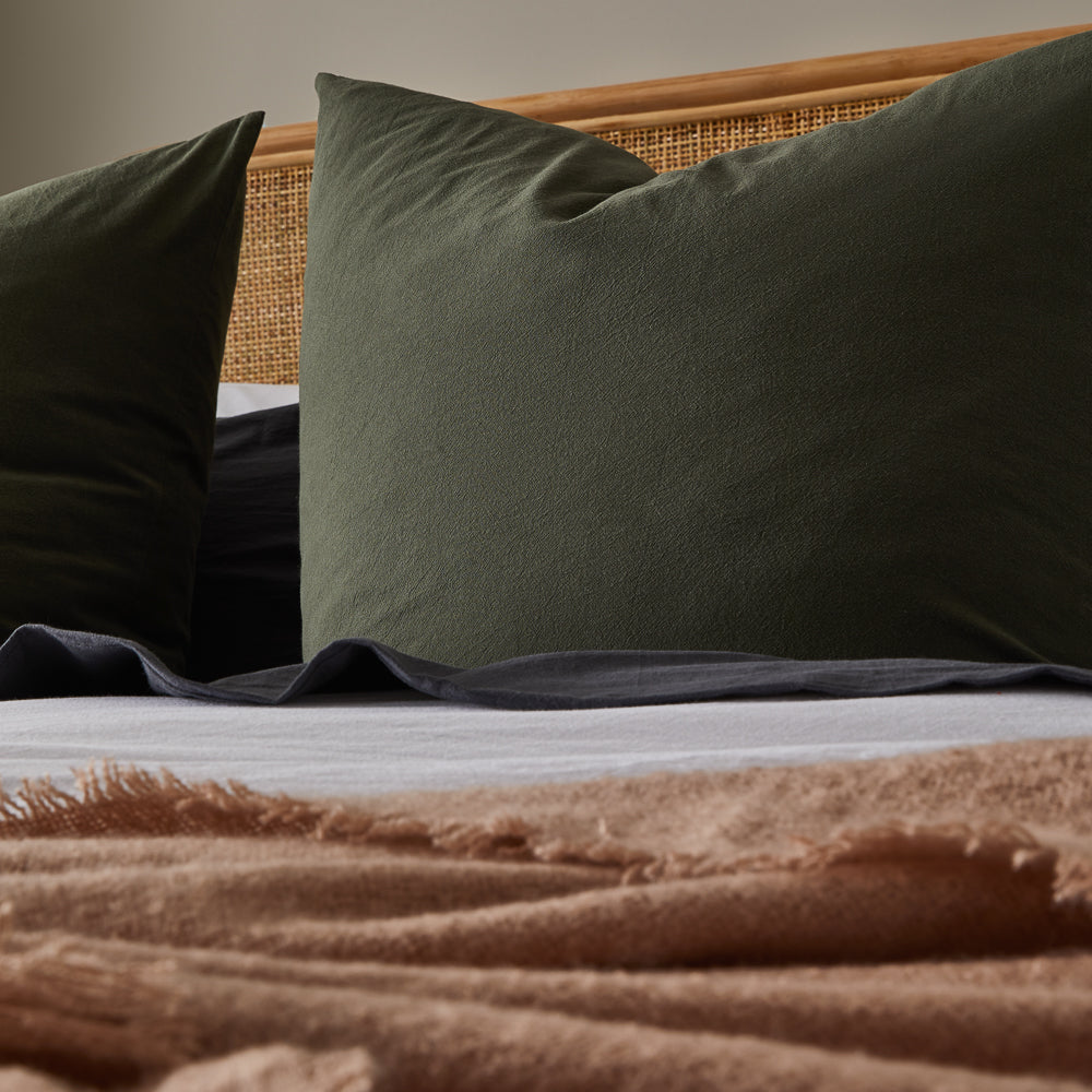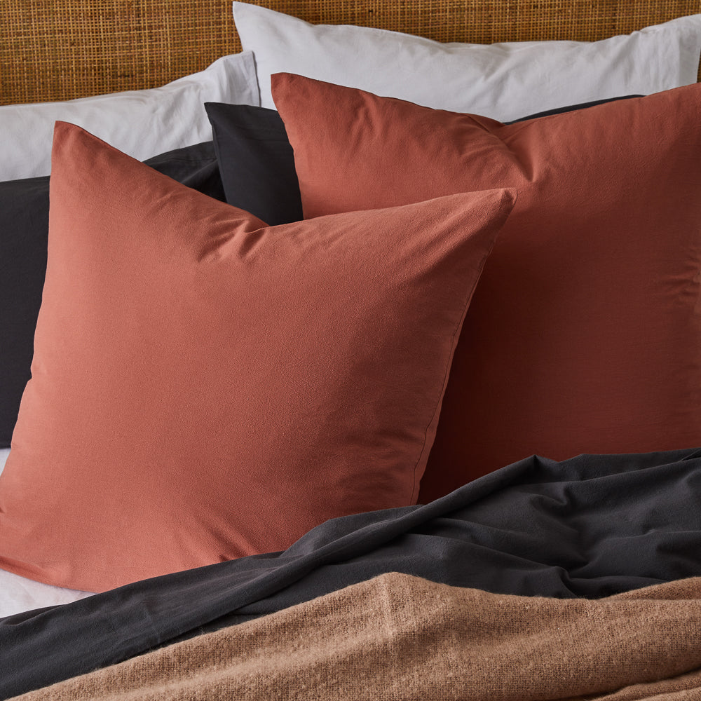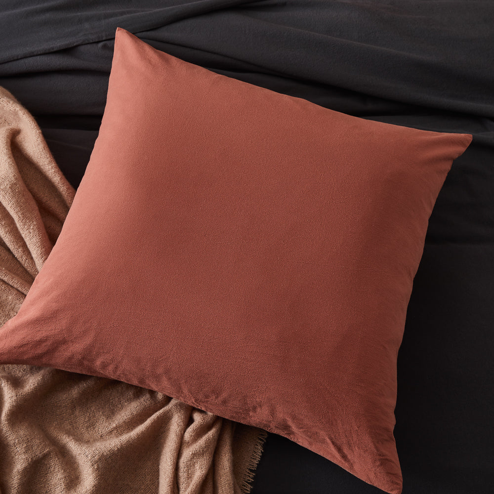 This pillowcase is your new everyday essential décor piece. Crafted from premium cotton fibres with a washed finish, the Essential European Pillowcase is perfectly designed to mix and match with any bedding design. The stonewash cotton is breathable and continues to get softer with every use. The Adorn Living® Essential European Pillowcase comprises of one 65 x 65cm pillowcase with a discreet invisible zip closure to keep the inner nice and secure. Available in seven fashionable colours: Sage, Forest, Rose, Mist, Henna, Mango, and White. Perfect for styling throughout the home the pillowcase will seamlessly coordinate with the Adorn Living® quilt covers and throws. For long lasting results, we recommend washing on a cold setting and with similar colours.