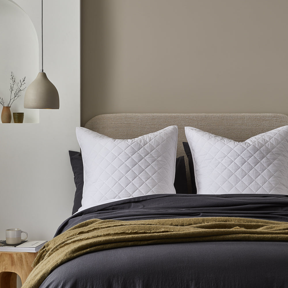 This pillowcase is your new everyday essential décor piece. Crafted from premium cotton fibres and finished with a soft wash, the Quilted European Pillowcase features diamond stitching and a plush fill making it the perfect styling choice for year-round comfort. The washed cotton is breathable and continues to get softer with every use, while the quilted soft filling provides extra comfort and an extension of style. The Adorn Living® Essential Quilted European Pillowcase comprises of one 65 x 65cm pillowcase with a discreet invisible zip closure to keep the inner nice and secure. Available in 3 fashionable colours: White, Natural, and Lilac. Perfect for styling throughout the home the pillowcase will seamlessly coordinate with the Adorn Living® quilt covers and throws.