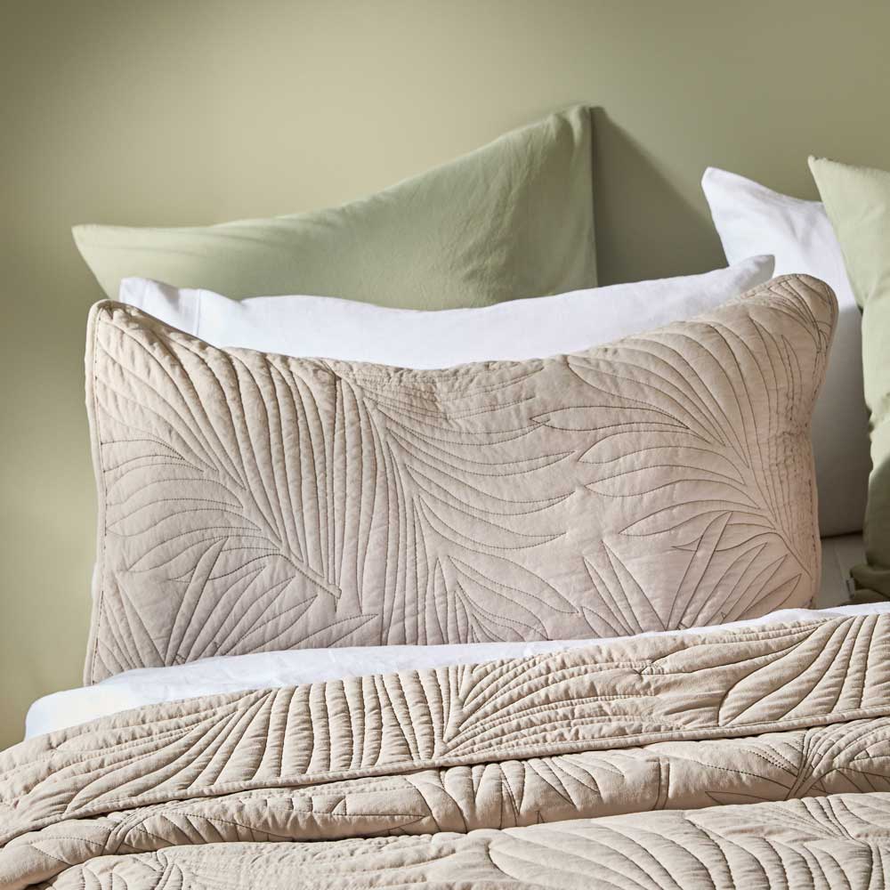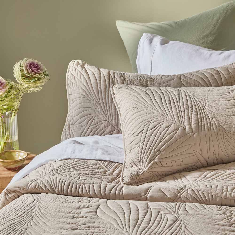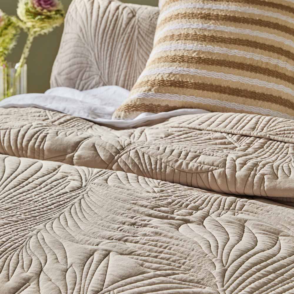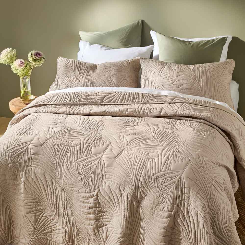 Turn your bedroom into a haven of comfort and style with the Adorn Living® Fern Coverlet Set Queen/King. Indulge in the luxurious, quilted feel of ultra-soft microfibre, featuring a calming fern leaf design for a touch of botanical charm. The natural base color of the Adorn Living® Fern Coverlet Set, complemented by contrasting green stitching, effortlessly blends into any neutral decor. Whether used as an extra layer for warmth during winter or as a standalone beauty for summer nights, the Adorn Living® Fern Coverlet Set Queen/King brings both cosiness and elegance. Enhance your sleep with this durable and easy-to-maintain masterpiece, complete with a coverlet and matching pillowcases for a cohesive and stylish look.