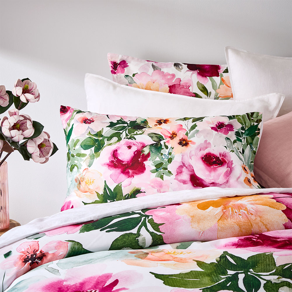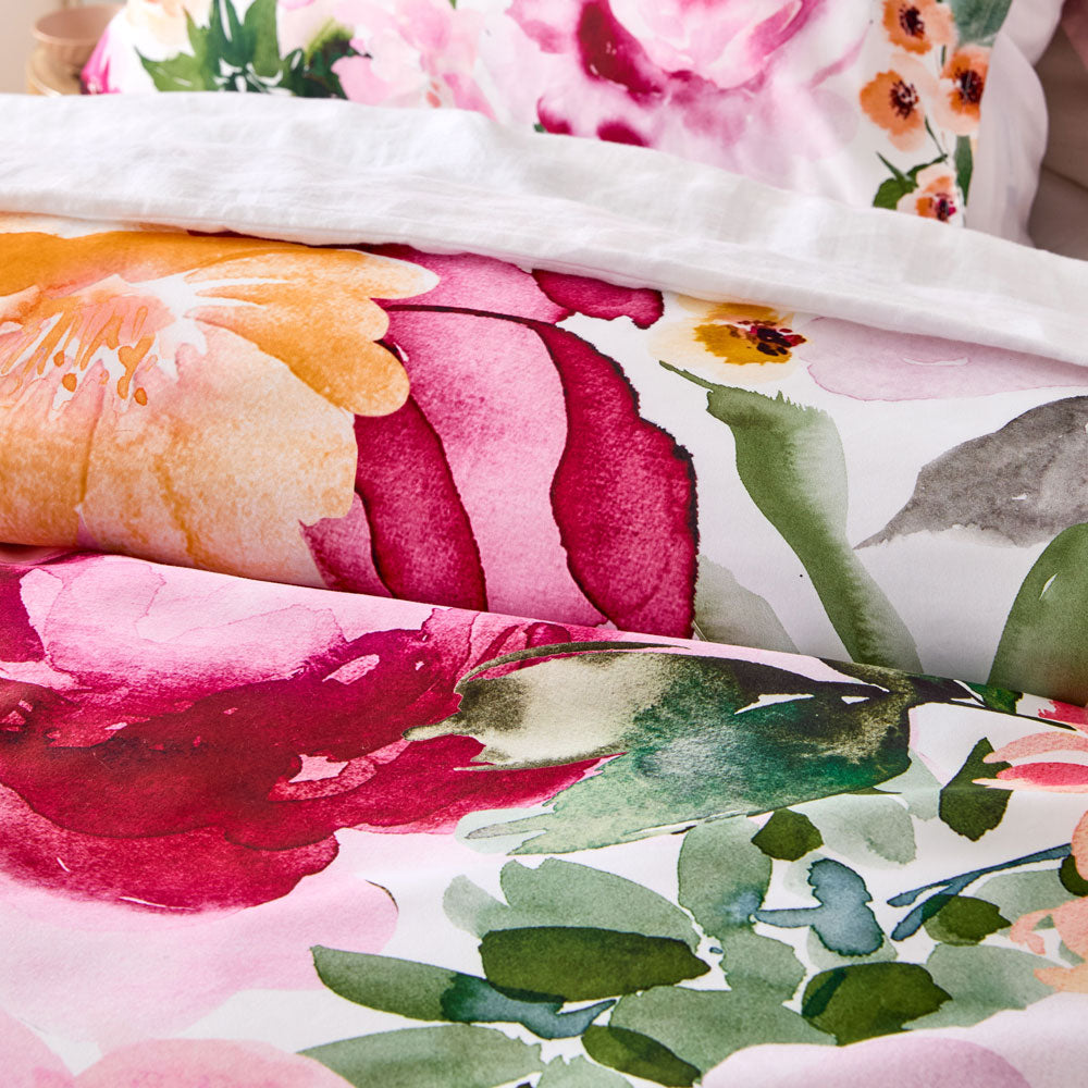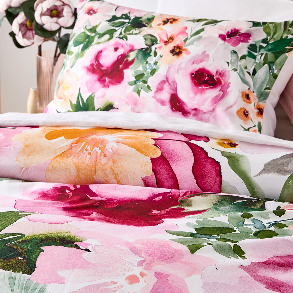Transform your bedroom with the Adorn Living® Heidi Quilt Cover Set. Painterly watercolour florals in vibrant fuchsia and peach tones exude timeless elegance. Crafted from soft microfibre, this machine-washable quilt cover set breathes life into any space. Pair with complementary MyHouse® bed sheets, pillowcases, cushions, and throws for a perfectly coordinated look. Available in Queen to Super King sizes. Shop MyHouse® for more quilt cover sets, bed sheets, bedding, and home decor.