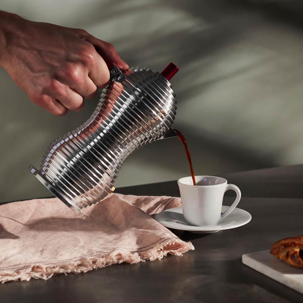 The espresso coffee maker Pulcina, designed by Michele de Lucchi is the product of intense research into the optimisation of the shape of the coffee pot to improve and enhance the organoleptic properties of coffee.