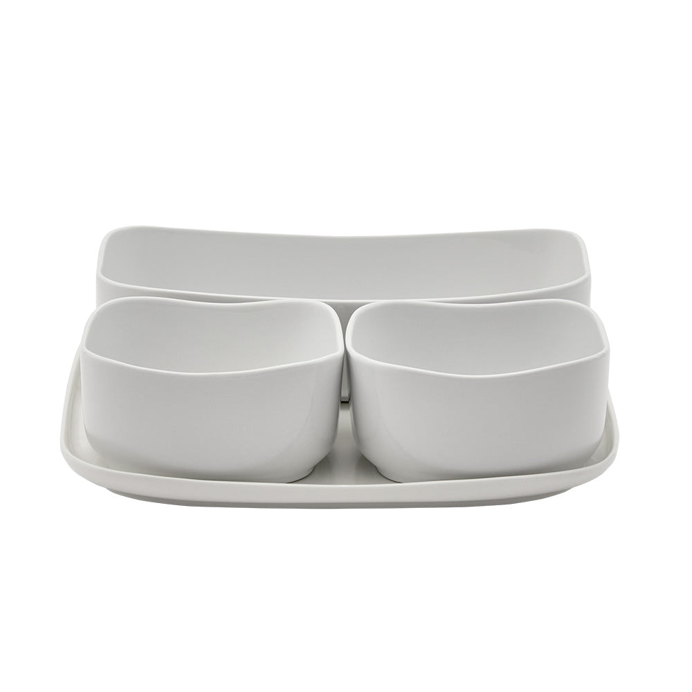 Experience versatile entertaining using the timeless Alex Liddy Classic 4 Piece Serving Set. Specially designed for varied dishes to be carried in one piece, or served separately, this set will allow you to proudly present your sides, dips and chips at your next event. Give the gift of minimalistic elegance. Boxed for gifting, this serving ware is perfect for housewarmings, weddings, birthdays, and more.