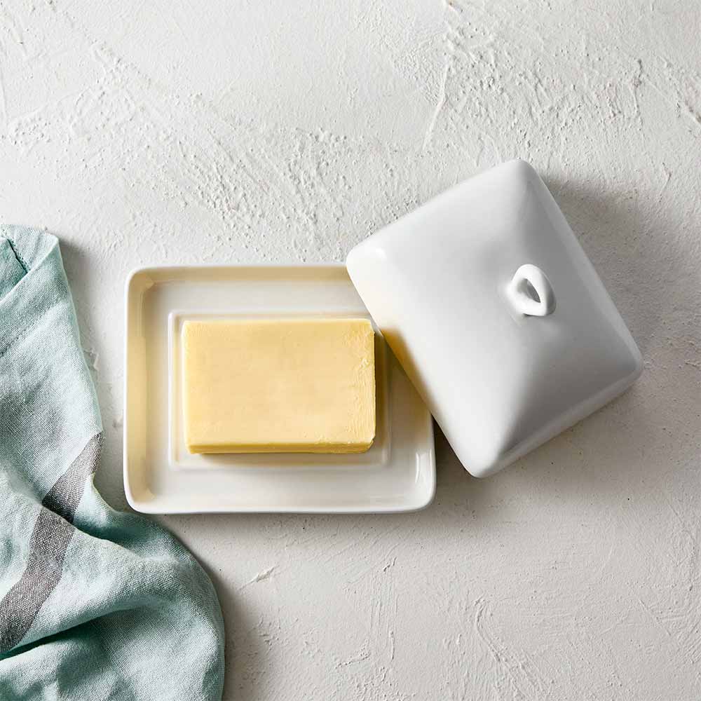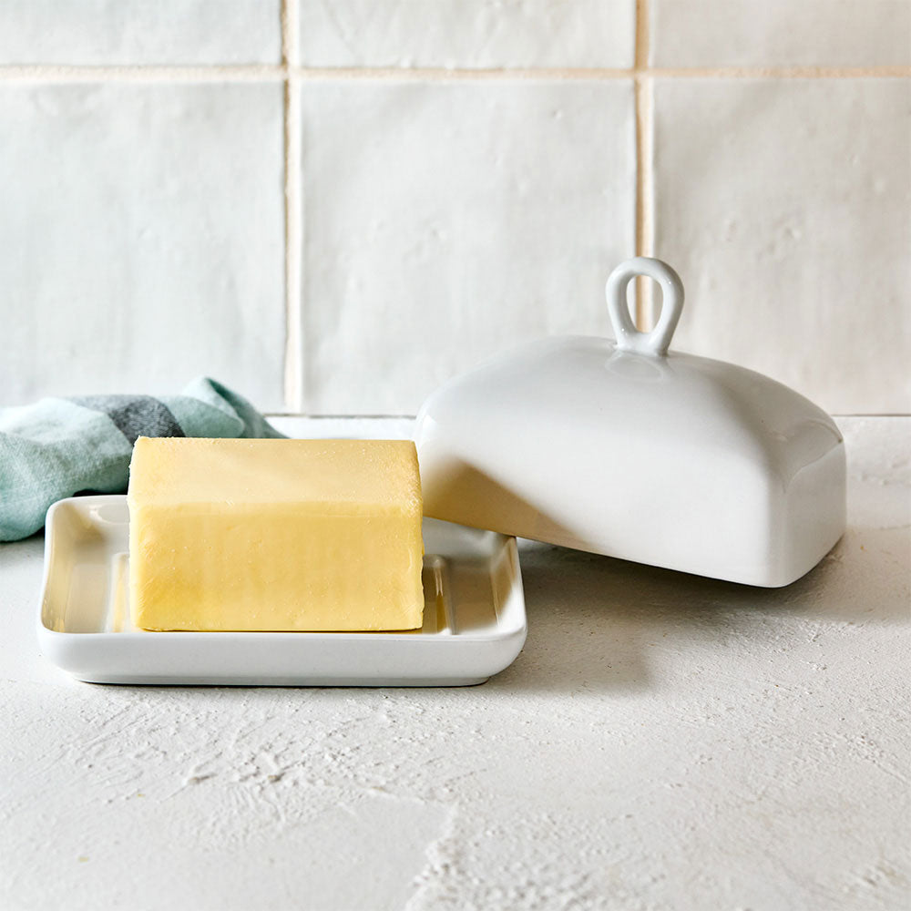 Store and serve butter and cheese with ease using the timeless Alex Liddy Classic Butter Dish. Specially designed to fit a whole block of butter, this dish will allow you to serve with confidence and reduce plastic waste. For the ultimate convenience and versatility, the bowls are microwave and dishwasher safe. Give the gift of minimalistic elegance. Boxed for gifting, this serving ware is perfect for housewarmings, weddings, birthdays, and more.