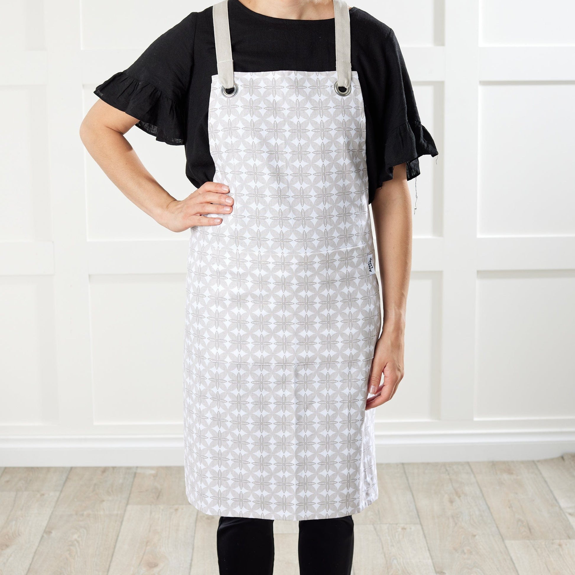 Refresh your kitchen with the tasteful Alex Liddy® Geometric Apron Dove. Crafted from 100% cotton, this apron boasts a sturdy, medium-weight construction that is both comfortable and protective - perfect for keeping up with the demands of a busy home cook. Showing off a soft Geometric print in an elegant natural dove colour, the apron benefits from a convenient pocket for keeping kitchen gadgets handy or your phone nearby. Wear the MyHouse Geometric Apron Dove to keep your clothes clean while cooking up a storm and dry when washing up the dishes. Machine washable for effortless cleaning, the apron can withstand hundreds of cycles while retaining its strength or durability for long-lasting use. Coordinate the MyHouse Geometric Apron Dove with the matching Geometric oven mitts and tea towels for a complete set.
