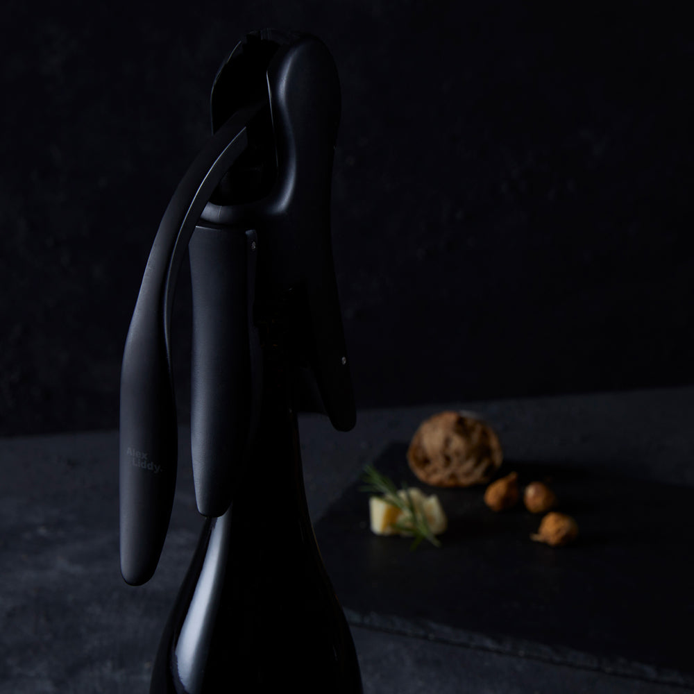 Featuring a contemporary matte black finish, the Alex Liddy® Slate & Co Vertical Corkscrew Black is the luxurious wine opener you need to add to your bar tool kit. Constructed of high-quality stainless steel and beautifully weighted for added control, the Alex Liddy® Slate & Co Vertical Corkscrew will last a lifetime. The vertical corkscrew takes out all the hard work with two quick movements. Hold the body of the corkscrew on top of the bottle and lower the lever firmly. Then simply lift the handle upwards and extract the cork. Packed for gifting, the Alex Liddy® Slate & Co Vertical Corkscrew Black is an excellent gift for weddings, birthdays, and other events for any wine connoisseurs. Complete your bar tool kit by combining the corkscrew with the Alex Liddy® Slate & Co Champagne Resealer Black.