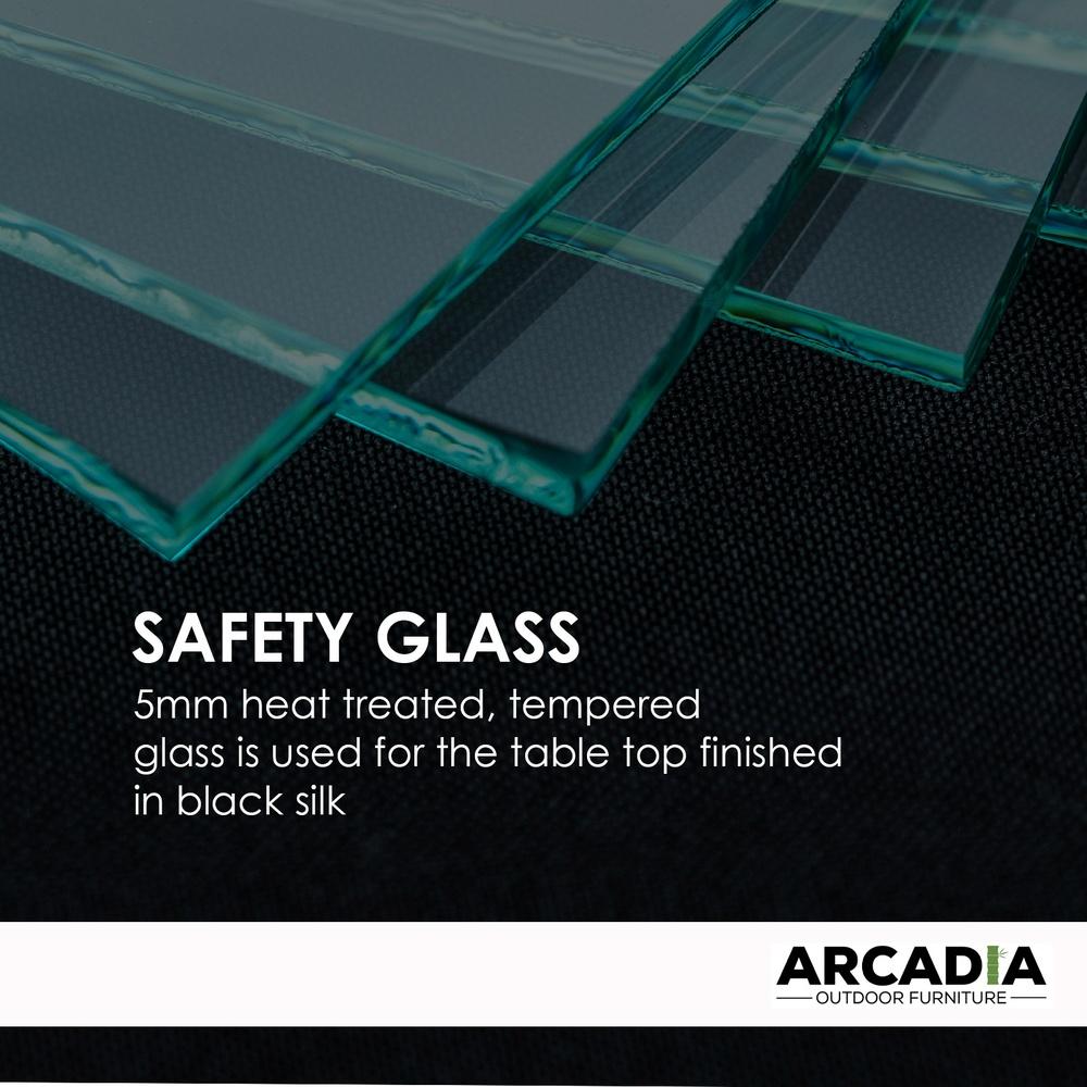 Steel (Frame), PE Rattan (Outer), Tempered Glass (Tabletop), 180g polyester (Cushion Outer), Vertical Cotton (Cushion Fill)
