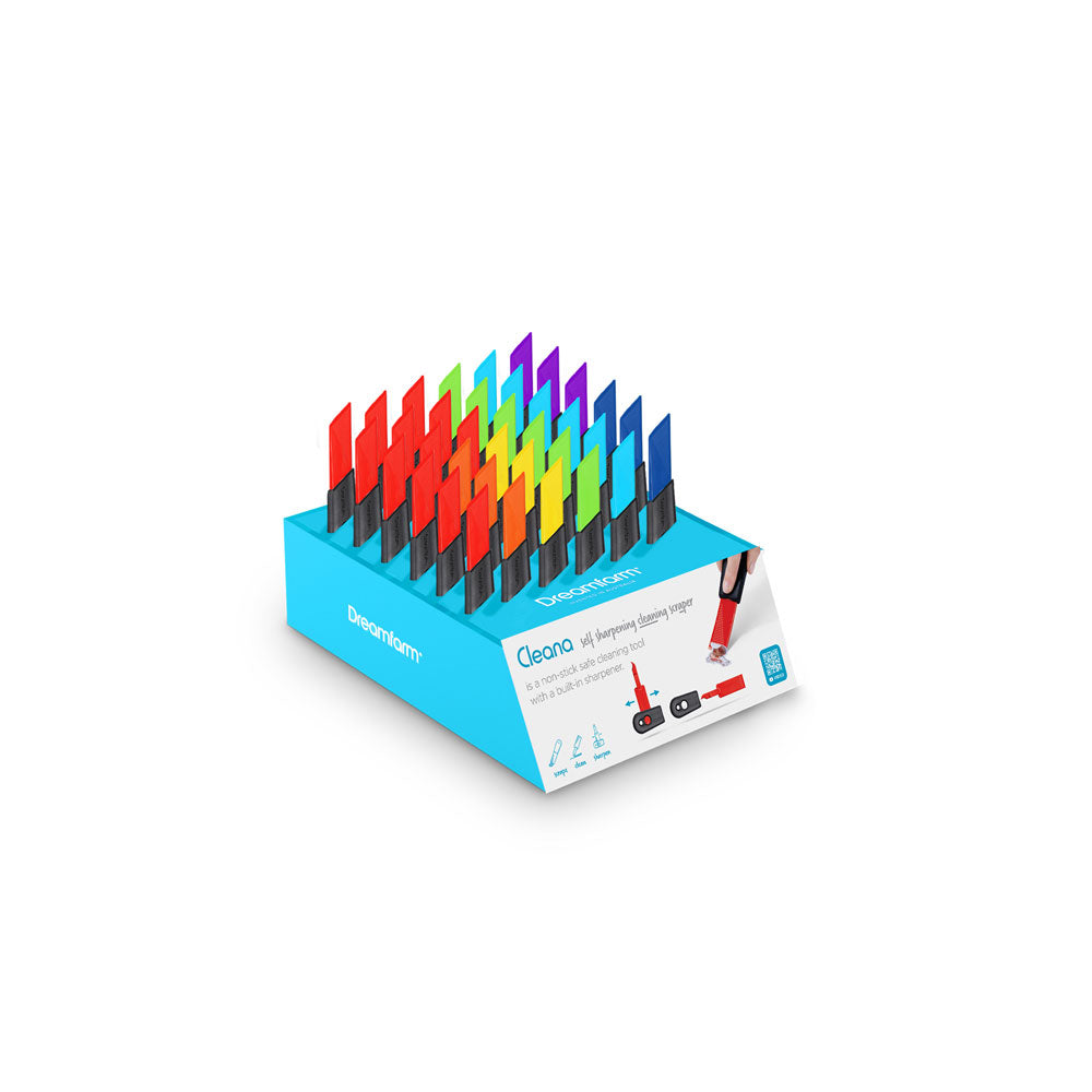 Cleana is a set of 2 non-stick safe cleaning tools with a built-in sharpener to create 1,000+ fresh scraping edges. Cleana’s non-scratch scraper safely removes stickers, labels, baked-on food, and hard to remove grime. Secondary hook scraper cleans hard-to-reach corners and crevices around stove tops and sink edges. Non-scratch scraper edge is as gentle on non-stick surfaces as a fingernail, but gets the job done without ruining your nails.