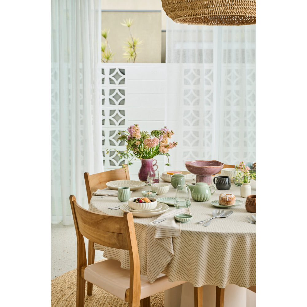 Rising gracefully on footed pedestals, the Ecology Rhodes Loop Handle Jug 1L Ember embodies elegance and show-stopping character. Crafted from stoneware and designed by Noreen Falvey, the Loop Handled Jug is finished with a high-gloss reactive glaze, fading into a neutral matte base. The palette is rich and earth-inspired, with layered, dark mauve tones and dappled washes of colour. With its sculptural, organic shape and distinctive loop handles, the Rhodes Loop Handled Jug stands apart, whether as a striking, stand-alone decorator piece or as functional servingware that brings an artful presence to your table.