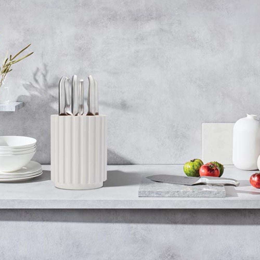 The Furi Radial Stone knife block has been artfully crafted to complement wooden and stone kitchen finishes and to be the centrepiece of your kitchen. Thoughtfully designed to securely store your knives and keep them in pristine condition. Universal slots allow you to organise the knives in the positions that suit you.