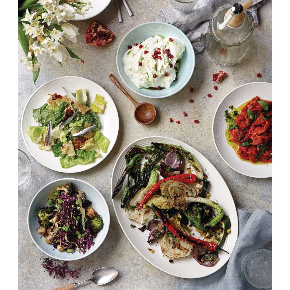• Large shallow bowl for accentuating and serving shared salads and side dishes