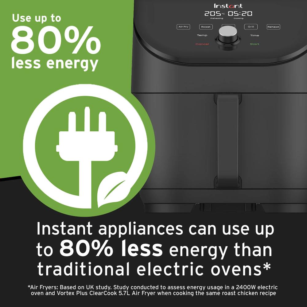 Keep the noise to a minimum with our #1 quietest air fryer certified by Quiet Mark— Vortex Slim Air Fryer with a new compact, space-saving slimmer design that doesn’t compromise on cooking capacity. The size is perfect: big enough for growing families but compact enough to fit any size kitchen. Built-in smart features make it simple to use, with customisable programmes to air fry, roast, bake, grill and reheat easily.