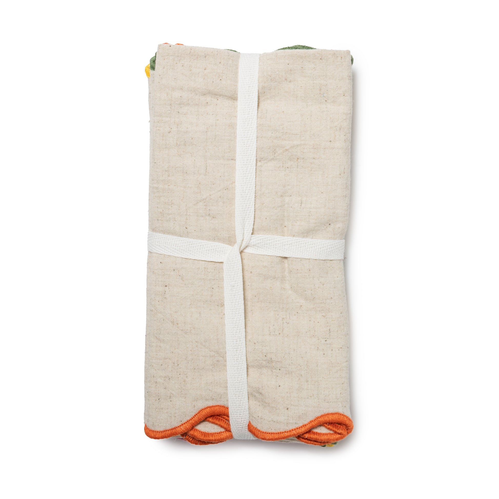 • CHIC FINISH: The perfectly pretty scalloped edge adds a refined touch to your tableware• POP OF COLOUR: Each napkin has a different colour edge for a playful yet cohesive look such as a pretty pink, calming green, cheerful yellow and a warm orange