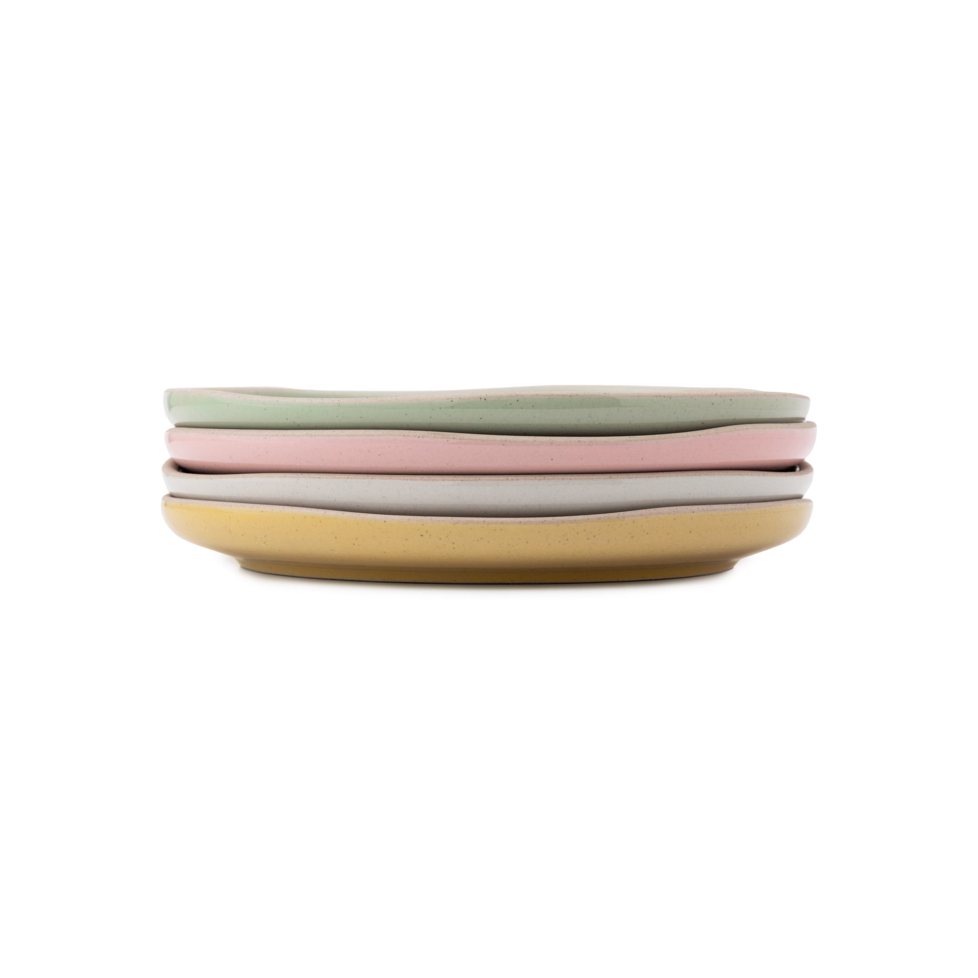 • SUPER VERSATILE: Spread the love and use for snacks, tapas, side dishes and even dessert• MADE TO LAST: Durable stoneware plates with a stunning glaze and raw stoneware edge in four beautiful colours such as pretty pink, soft white, calming green and cheerful yellow