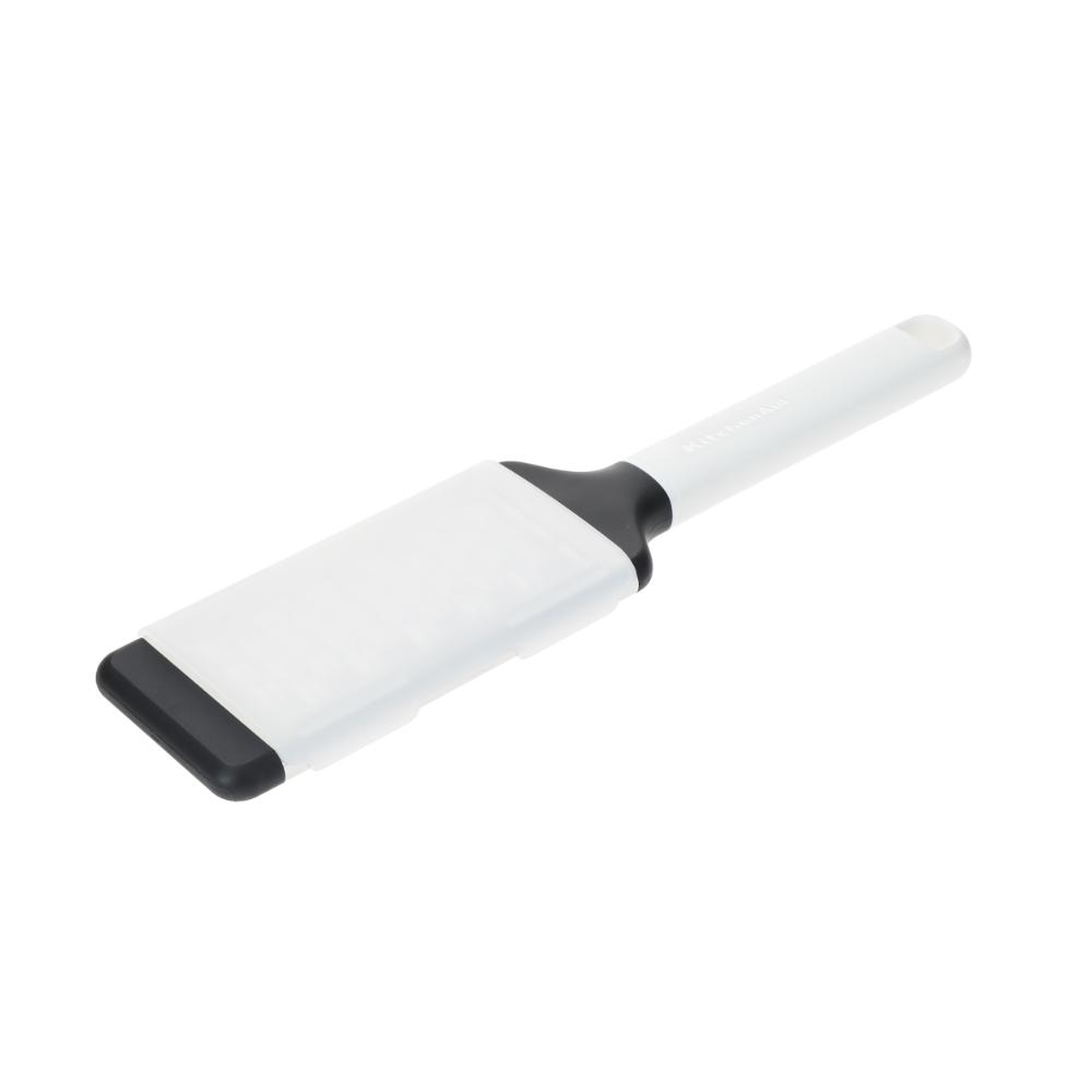 Elevate your everyday food prep with the KitchenAid Medium Grater, a durable and stylish kitchen tool designed to master a variety of grating tasks with ease. The improved ergonomic design handle is precisely weighted for optimal comfort, balance, and control, giving it a premium feel in your hand. A debossed logo and built-in hanging loop add a polished touch to your kitchen setup.