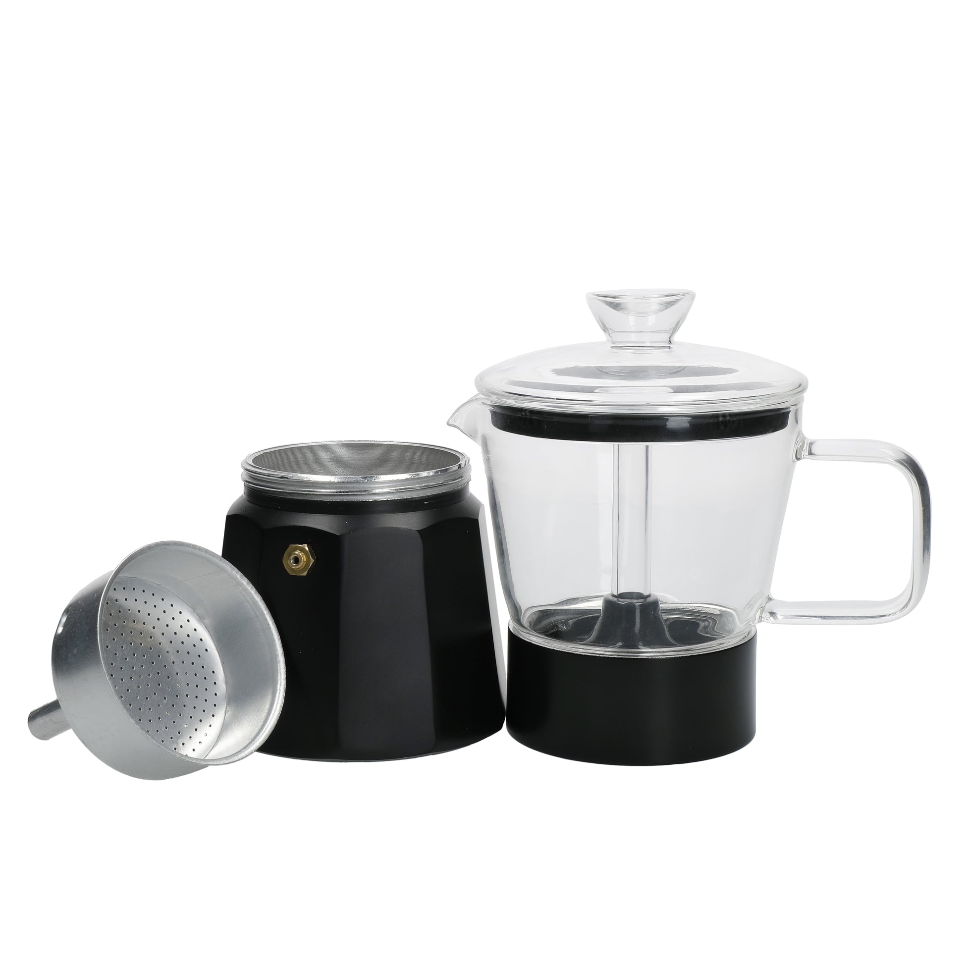 Embrace deep-rooted coffee making traditions with a contemporary twist with the La Cafetière Verona Six Cup Glass Espresso Maker. An innovative shock and heat-resistant borosilicate glass top chamber which allows you to watch your coffee bubble and rise! Based on the classic Italian design, the rest is exactly how you expect it. Made of high-quality, rust-resistant stainless steel with an induction-safe base, the espresso maker takes on heat really quickly, so your coffee will be hot and bubbling in no time. Simple to use, just add hot water to its lower chamber, fill the filter with coffee grounds, then heat on the stove until your cup is ready. The coffee maker is fitted with a stay-cool handle that makes it easy to retrieve from the stove, and it feels comfortable to pour. With 290 ml (5.8 fl oz) capacity, you’ll be able to make up to six espresso cups, so you can enjoy a relaxing cup of coffee with friends.