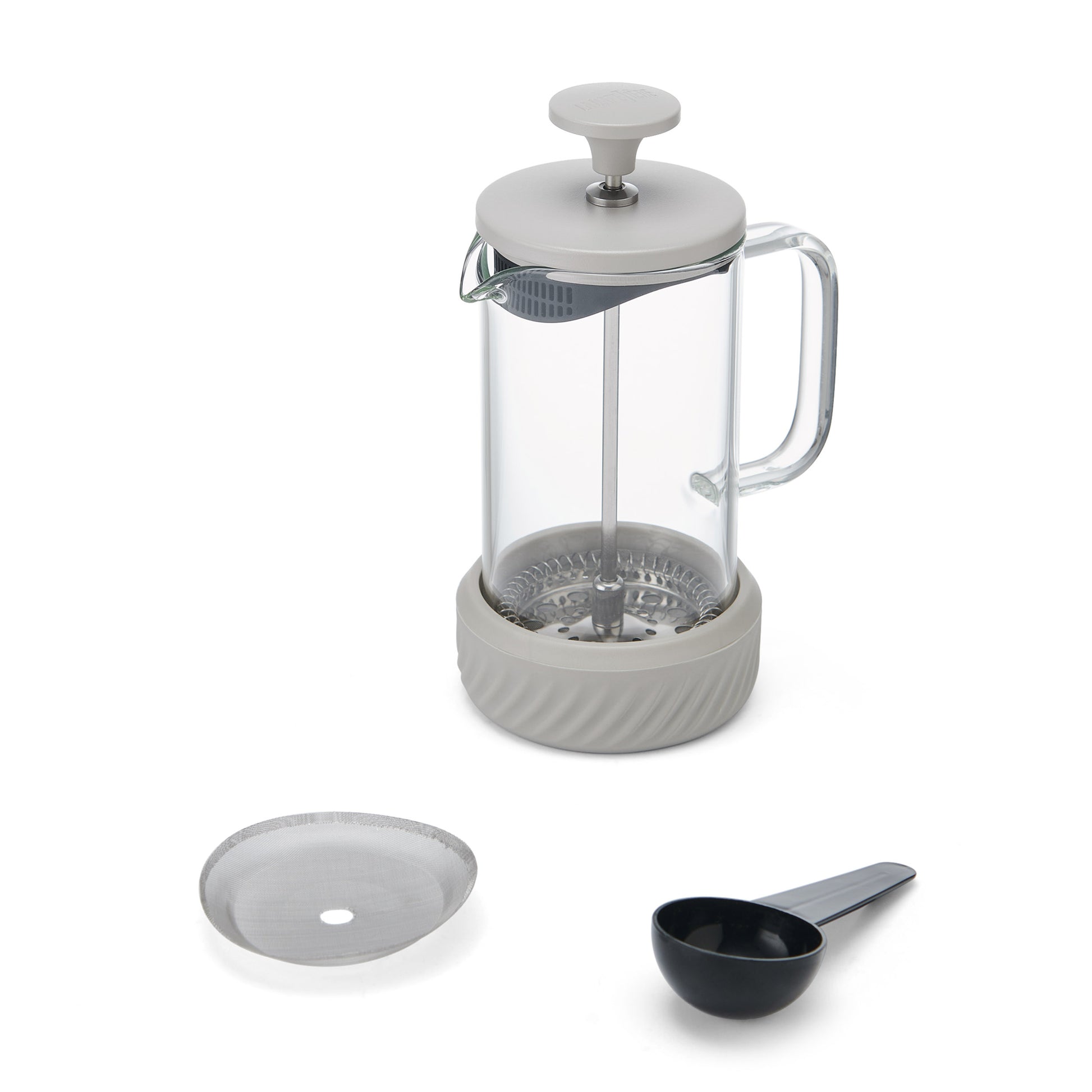 • The beaker is made from borosilicate glass and is heat and shock-resistant, and the removable base is made of premium silicone• 350ml/3-CUP Cafetière- This French press is surprisingly sleek and makes 3 cups of coffee in one press