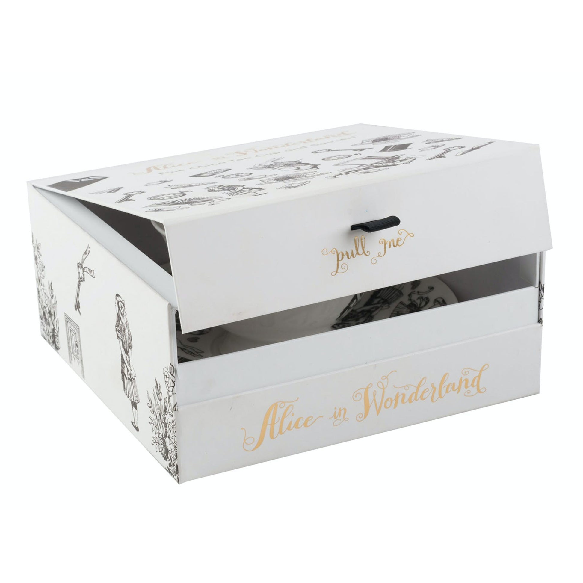 • A CURIOUS CUP AND SAUCER, featuring sketches from a vintage Alice in Wonderland card game• BURSTING WITH CHARM, the pieces depict an assortment of Alice illustrations, with intricate gold details