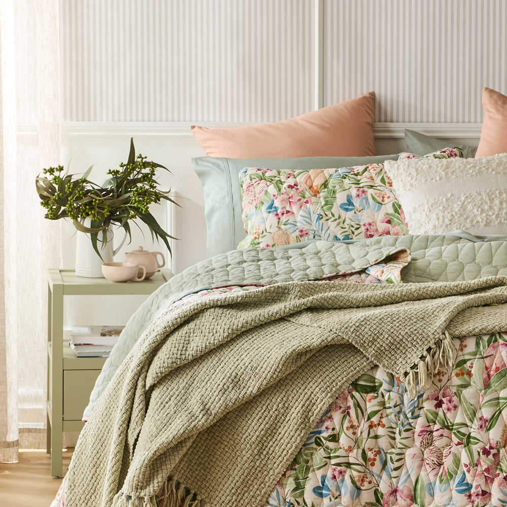 Discover the MyHouse® Darwin Coverlet Set, showcasing our exclusive hand-drawn design featuring Australian native flora and fauna. This beautifully crafted coverlet brings artistic charm and natural elegance to your bedroom styling. Layer with cushions, throws, and additional pieces from our Darwin collection (sold separately) to create a cohesive look. The Darwin Coverlet Set transforms your space into a botanical retreat celebrating Australia's unique beauty. Shop MyHouse® for more quilt overs, pillowcases, bed sheets, and more bed linen.