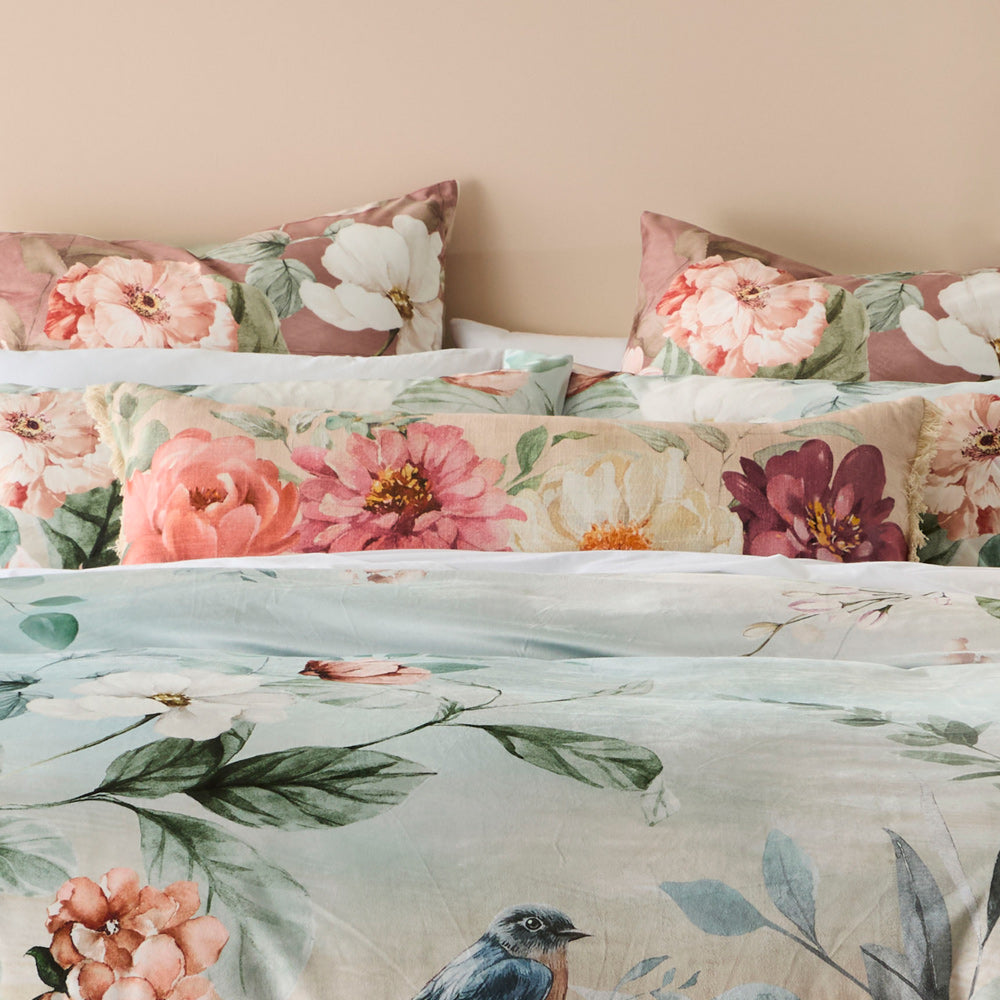 Enhance your décor with the MyHouse® Primrose Lumbar Cushion. This elongated rectangular cushion showcases stunning watercolour florals in soft, romantic hues with elegant fringe trim. Perfect for adding dimension when layered on beds or sofas, the Primrose Lumbar Cushion brings artistic flair to any room. Style with coordinating pieces from the Primrose collection to create a beautifully cohesive, gallery-inspired look. Shop MyHouse® for more quilt overs, pillowcases, bed sheets, and more bed linen.