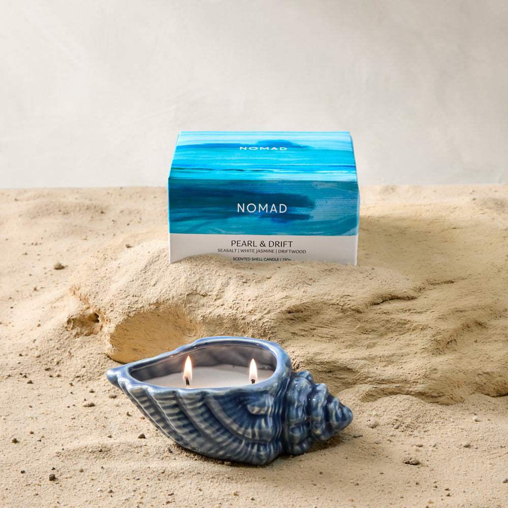 Embrace coastal elegance with the MyHouse® Nomad Shell Candle in Pearl & Drift, featuring notes of sea salt, white jasmine, and driftwood. Housed in a beautiful ceramic shell that doubles as decor, this scented candle captures ocean tranquillity. Exquisitely packaged in ocean-inspired artwork, it's perfect for effortless gifting. Shop MyHouse® for more home fragrance and decor accessories perfect for every room in your home.