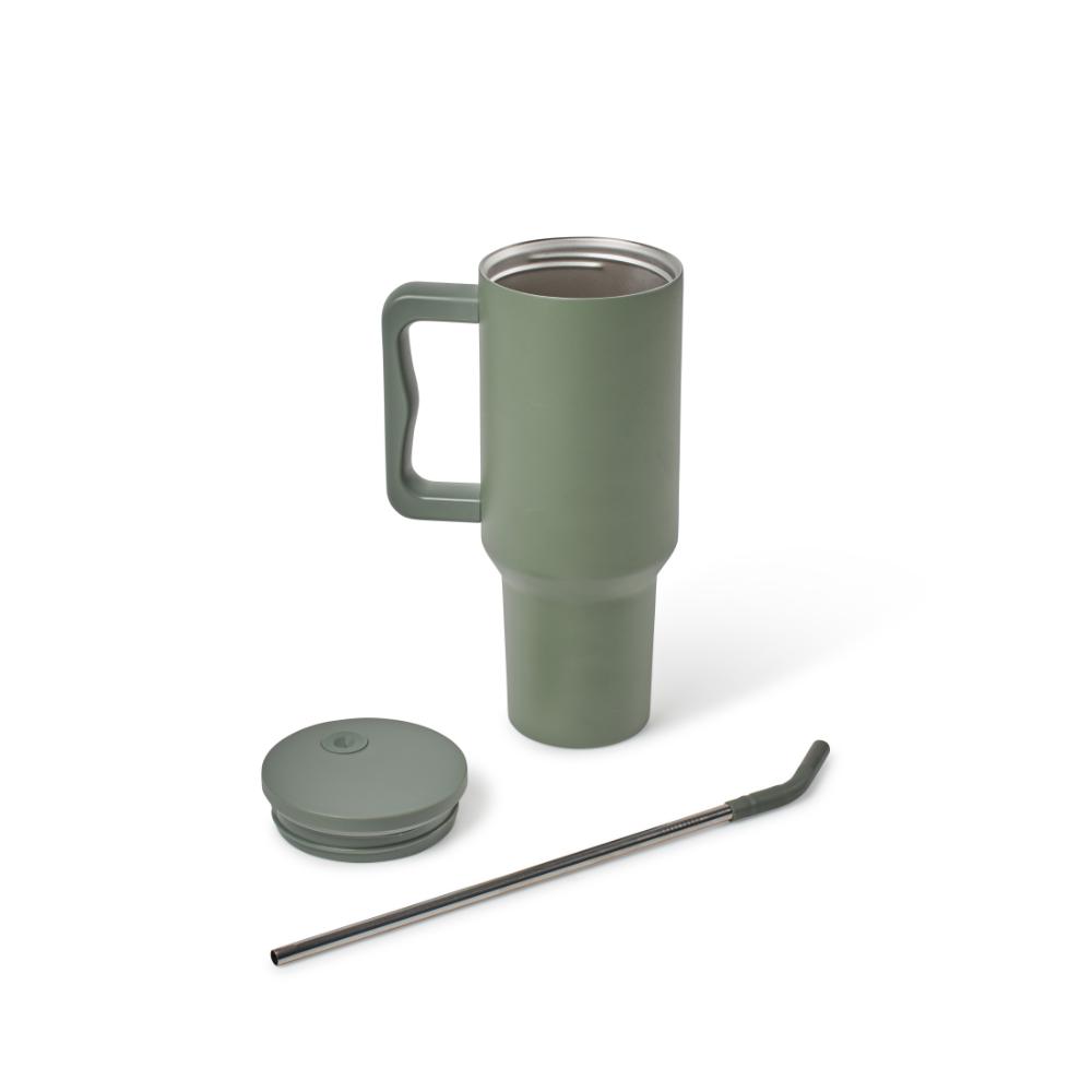 Tired of constantly refilling your cup? Our Hydra mega cup has got your back! With a massive 1.1L capacity, our giant is for those who take their hydration seriously. Crafted from double-walled stainless-steel, your drinks stay hot or cool for hours. Sip effortlessly with the convenient straw and hold steady with the side handle. Perfect for long treks or extended desk marathons, it's designed to slide into most cup holders for easy travel. Just remember to hand wash only to keep it looking sharp. With the Hydra mega cup, you’re not just sipping - you’re making a mega statement!
