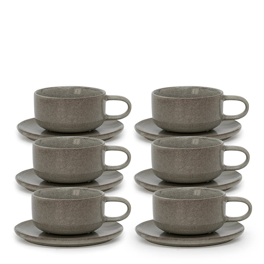 Salt & Pepper Relic Tea Cups & Saucers 260mL - Set of 6