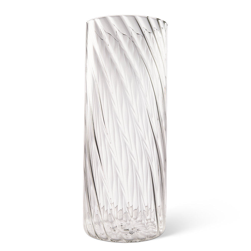 Crafted from heat-resistant glass, this versatile vessel features a swirled rib pattern that dances with the light, adding a subtle shimmer to any space. Style it with a flickering candle (sold separately) for a warm, inviting glow, or fill it with fresh blooms with the elegant 25cm height allowing for longer stemmed arrangements. Whether it’s on your dining table, console, or bedside, this vase is designed to bring a touch of everyday elegance to your home.