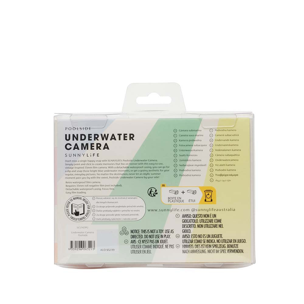 Capture summer the best way we know how. The SUNNYLiFE Underwater Camera is easy-to-use and ensures your memories live on forever. Featuring a detachable waterproof casing, high quality lens, viewfinder, and a wrist strap, snap up the moments that matter. Just add 35mm film and simply, point and click. Don’t let your next adventure go unseen with its multi coloured hues and maxi stripe print that will have you capturing the carefree spirit of summer.