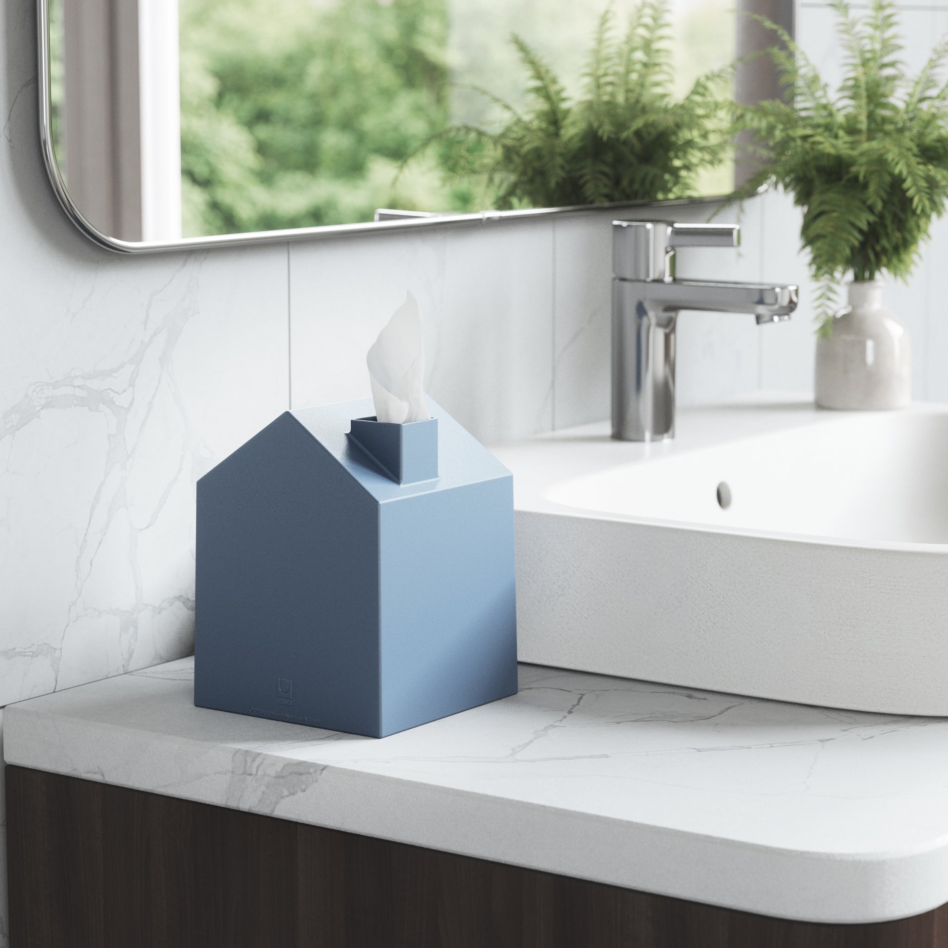 The playful design of the Umbra Casa Tissue Cover makes your standard square tissue box a lot less boring. This tissue box holder is available in slate blue and white and shaped like a house with a tiny chimney stack that dispenses your tissue, making it look like a little cloud of smoke. Perfect for disguising standard boutique (cube-shaped) tissue boxes and adding a decorative touch to your bathroom, bedroom, or any other room in your home or office.