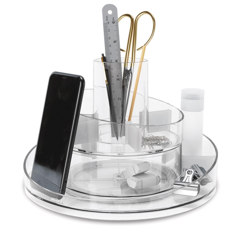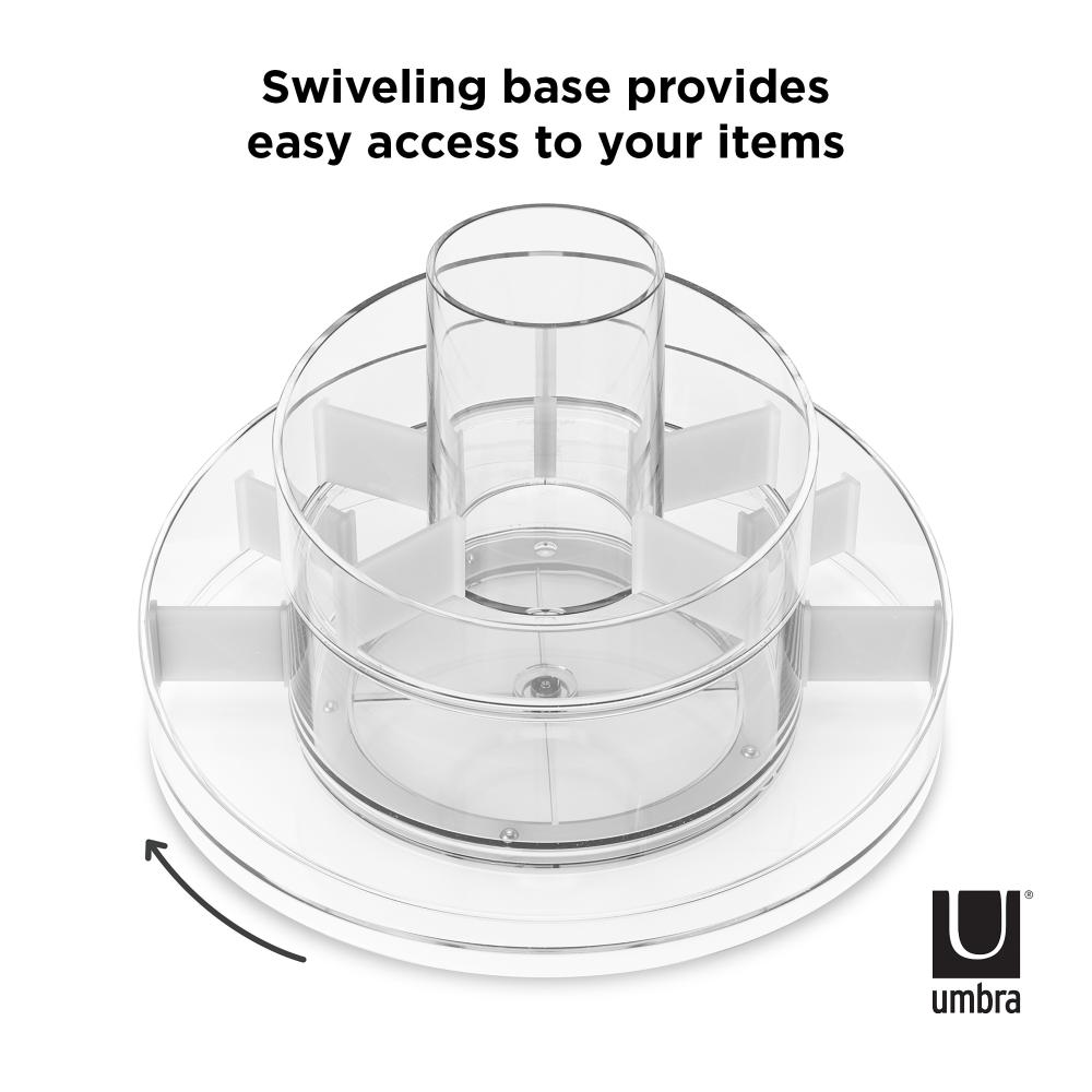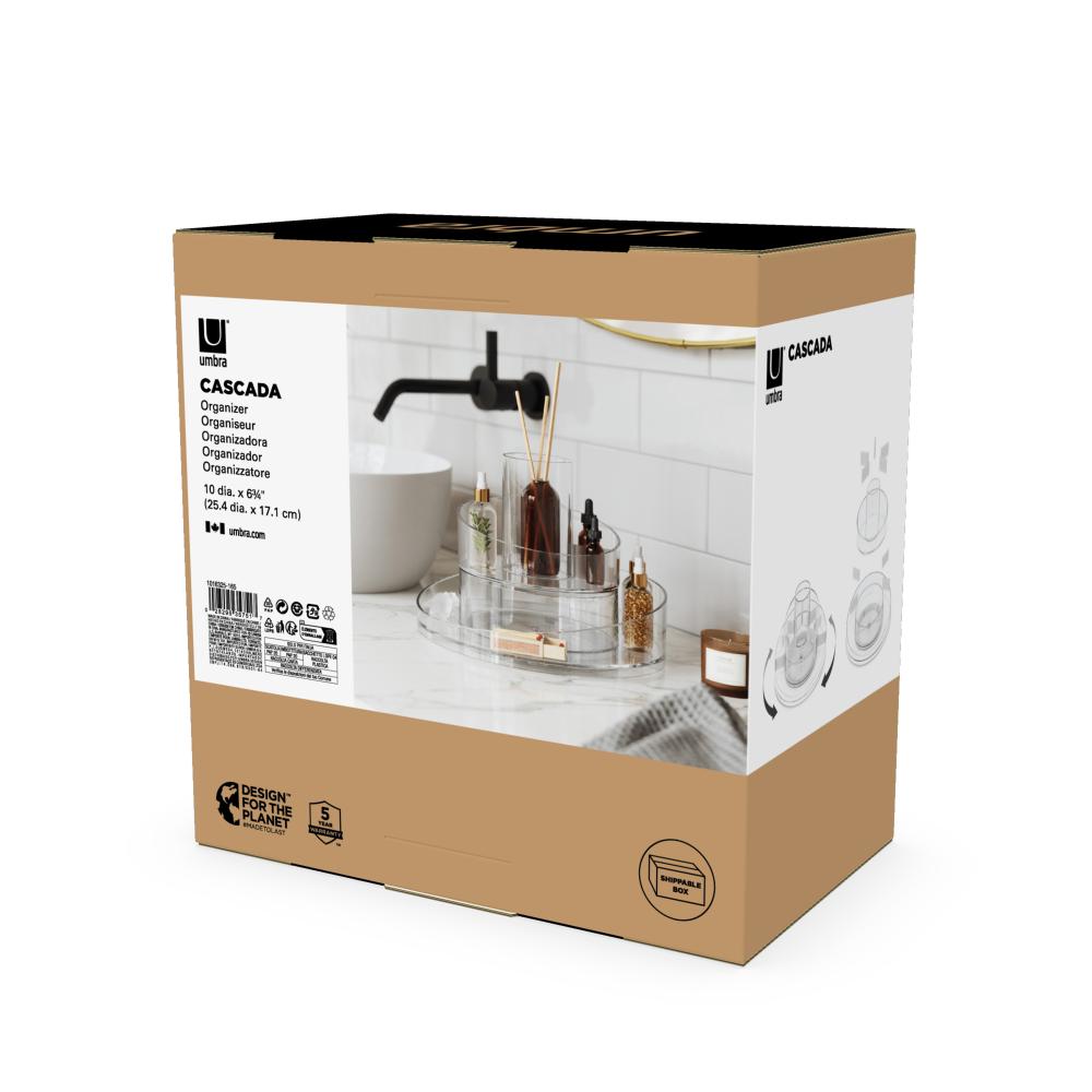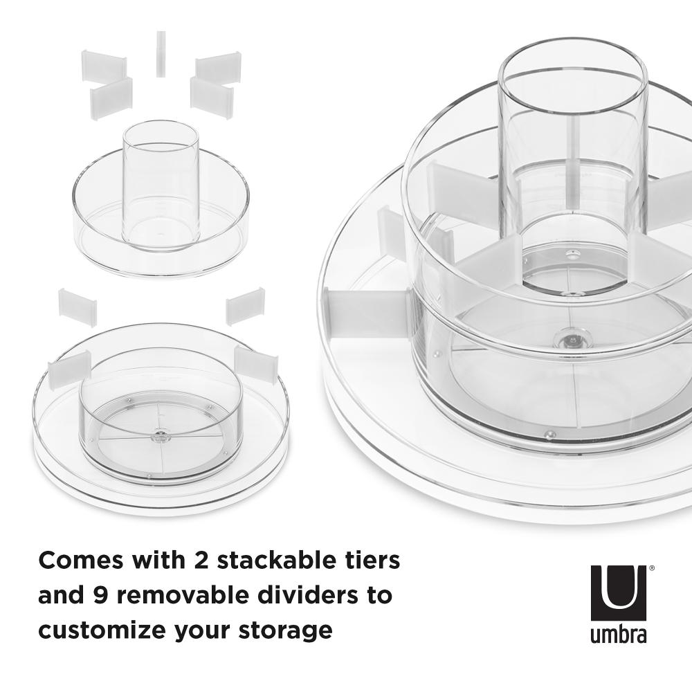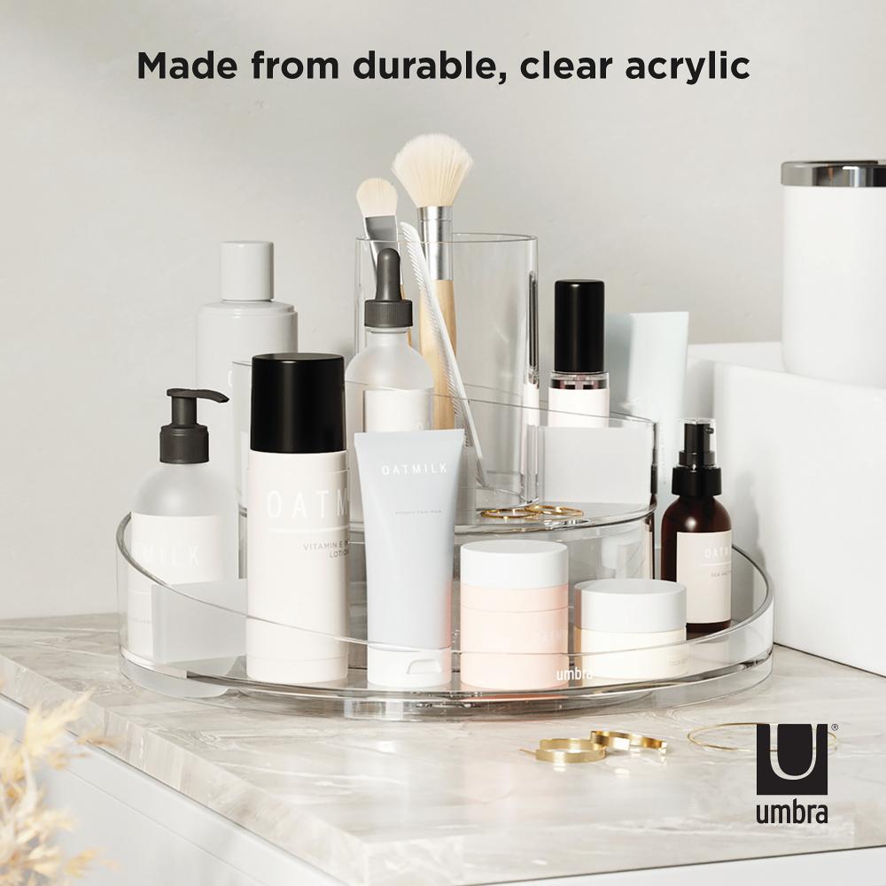 Umbra Cascada’s organic shape and multiple storage compartments create an eye-catching look while providing organizational storage. A makeup organizer with a swivelling base, Cascada features two separate compartments that can be stacked on top of one another or used in different places. Cascada comes with 9 removable and customizable dividers that can be placed in the organizer to create separation and extra compartments. With a clear acrylic finish, Cascada has multiple tiers for versatile storage.