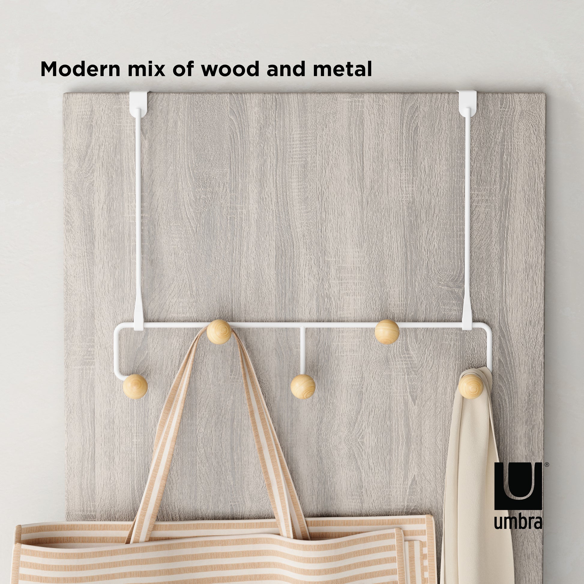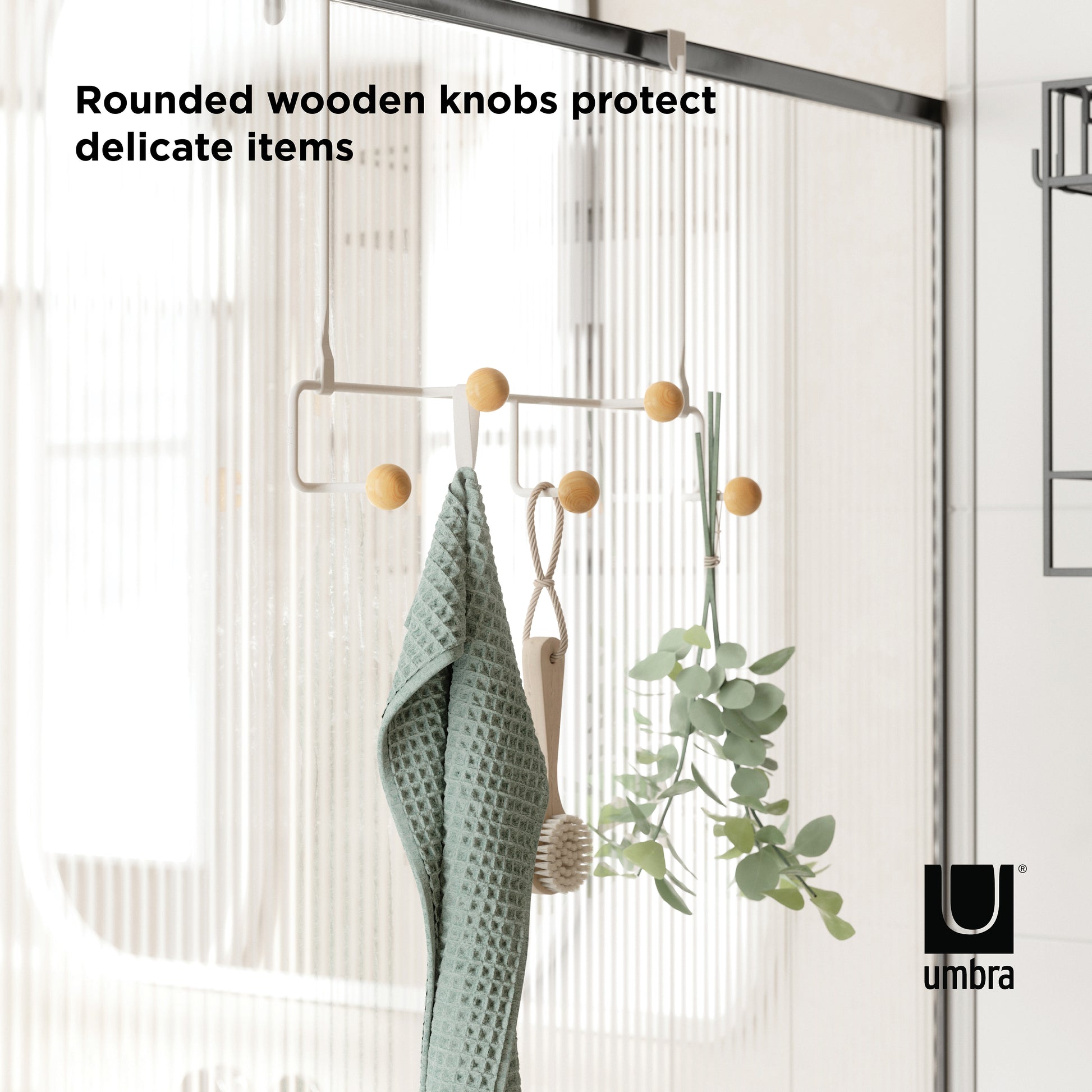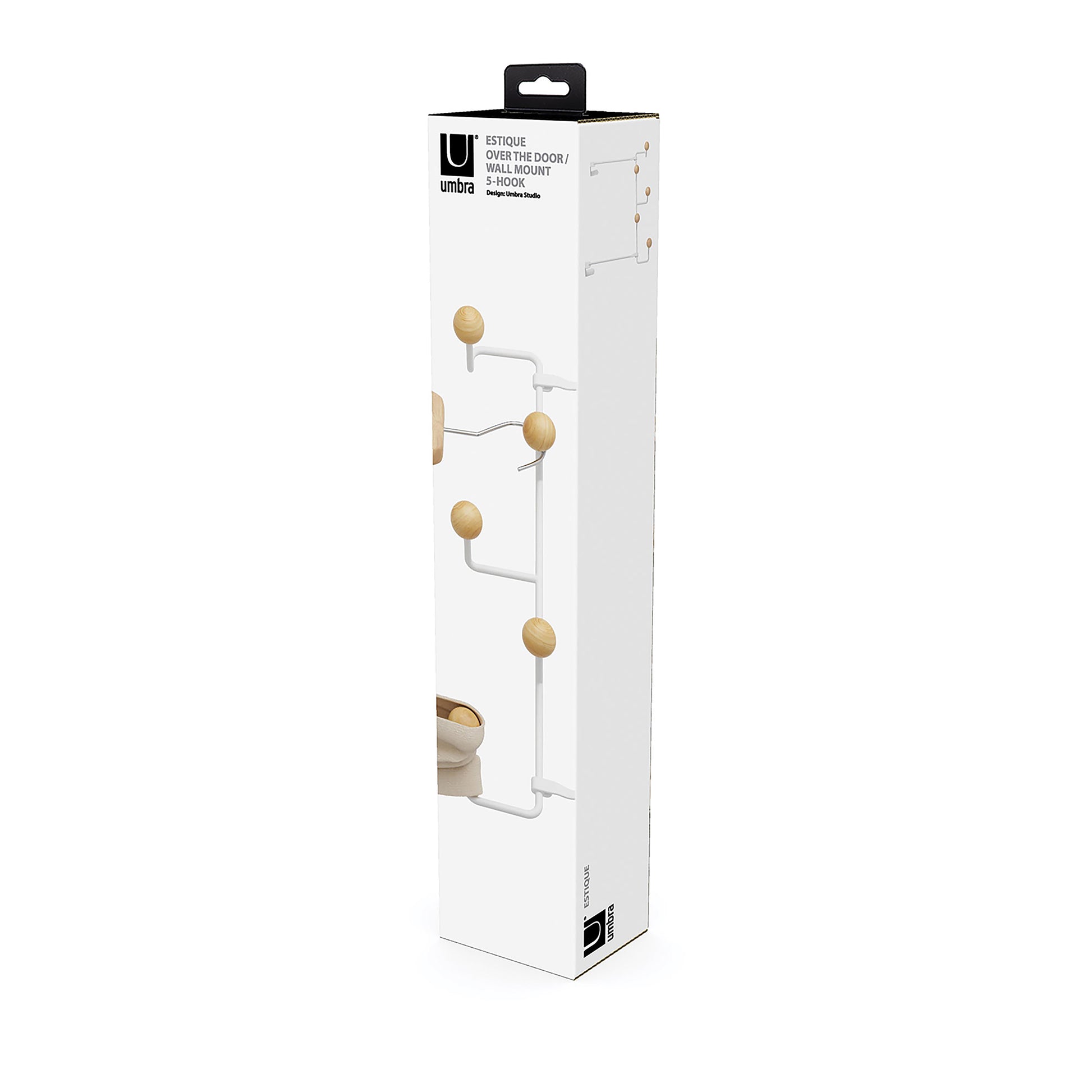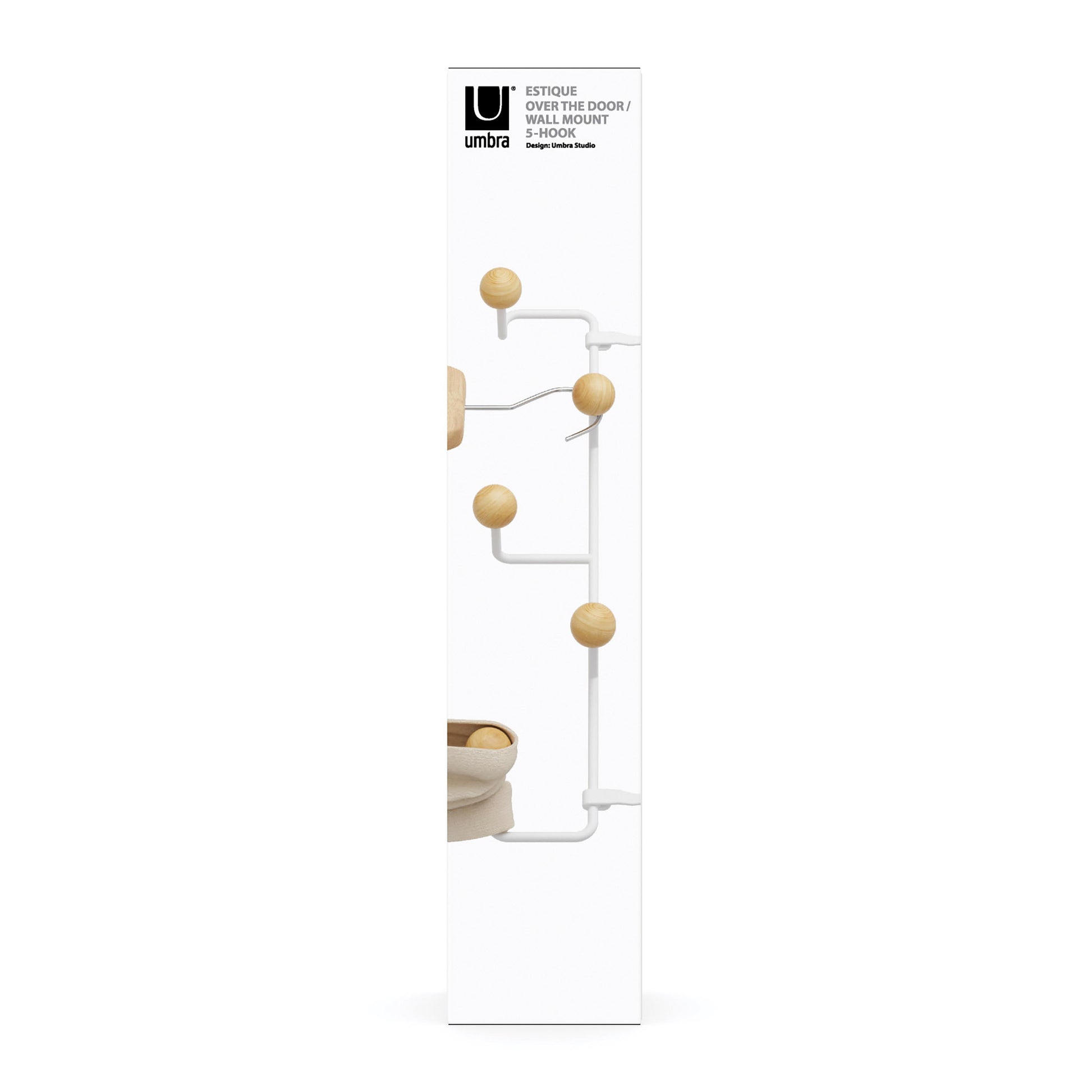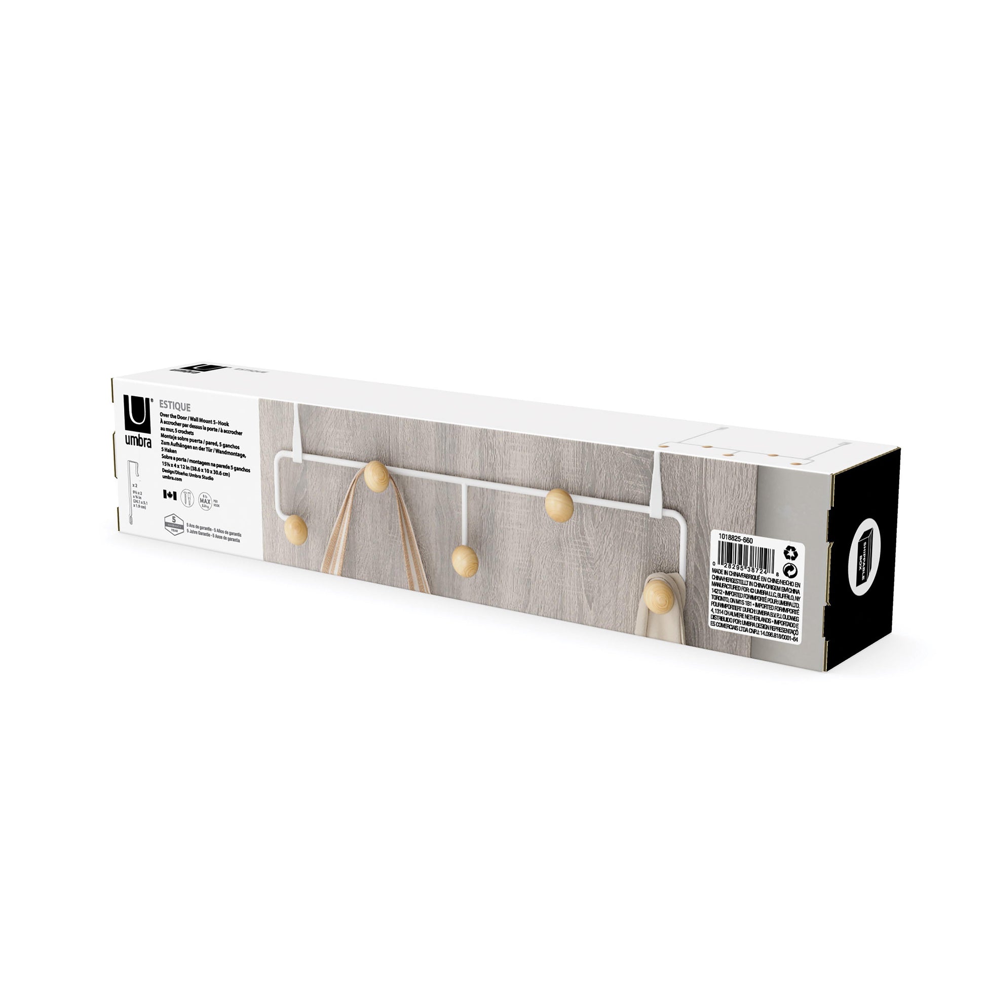 An extension of our Estique family, the Umbra Estique Over the Door Hook utilizes unused space to create easy access storage for your everyday essentials. Made of rust-free metal and wooden knob accents, this over the door organiser can be used in a variety of rooms with five hooks for storage. Use this multi-purpose storage solution for jackets, hats, bags, leashes and more, making items easy to grab before you head out the door.