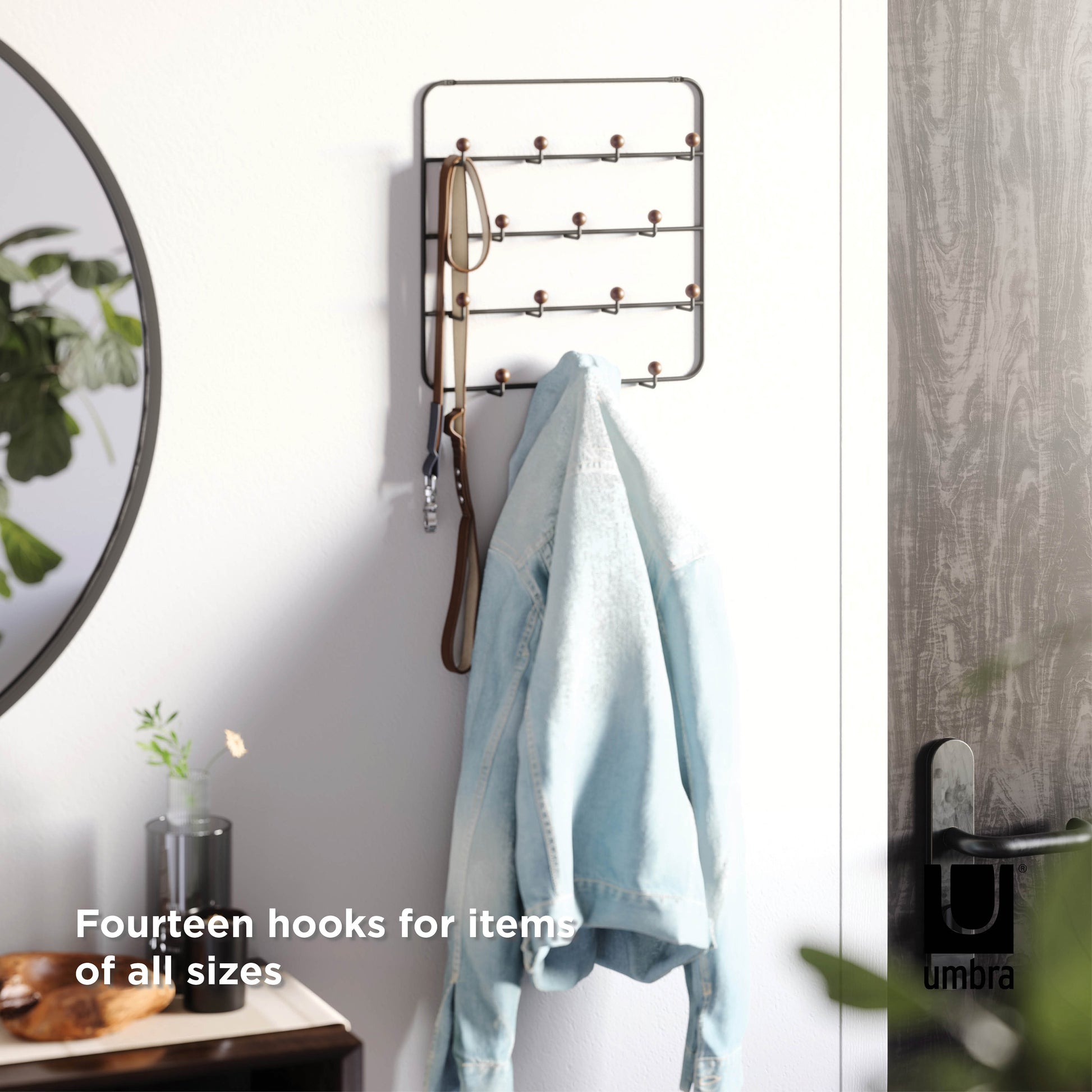The Umbra Estique Over the Door organiser features 14 hooks, providing easy access to your belongings. Estique can be either wall-mounted or hung over a door using over-the-door hooks that are included. In addition to adding a warm touch to Estique’s design, these pegs prevent delicate items from pulling or snagging.