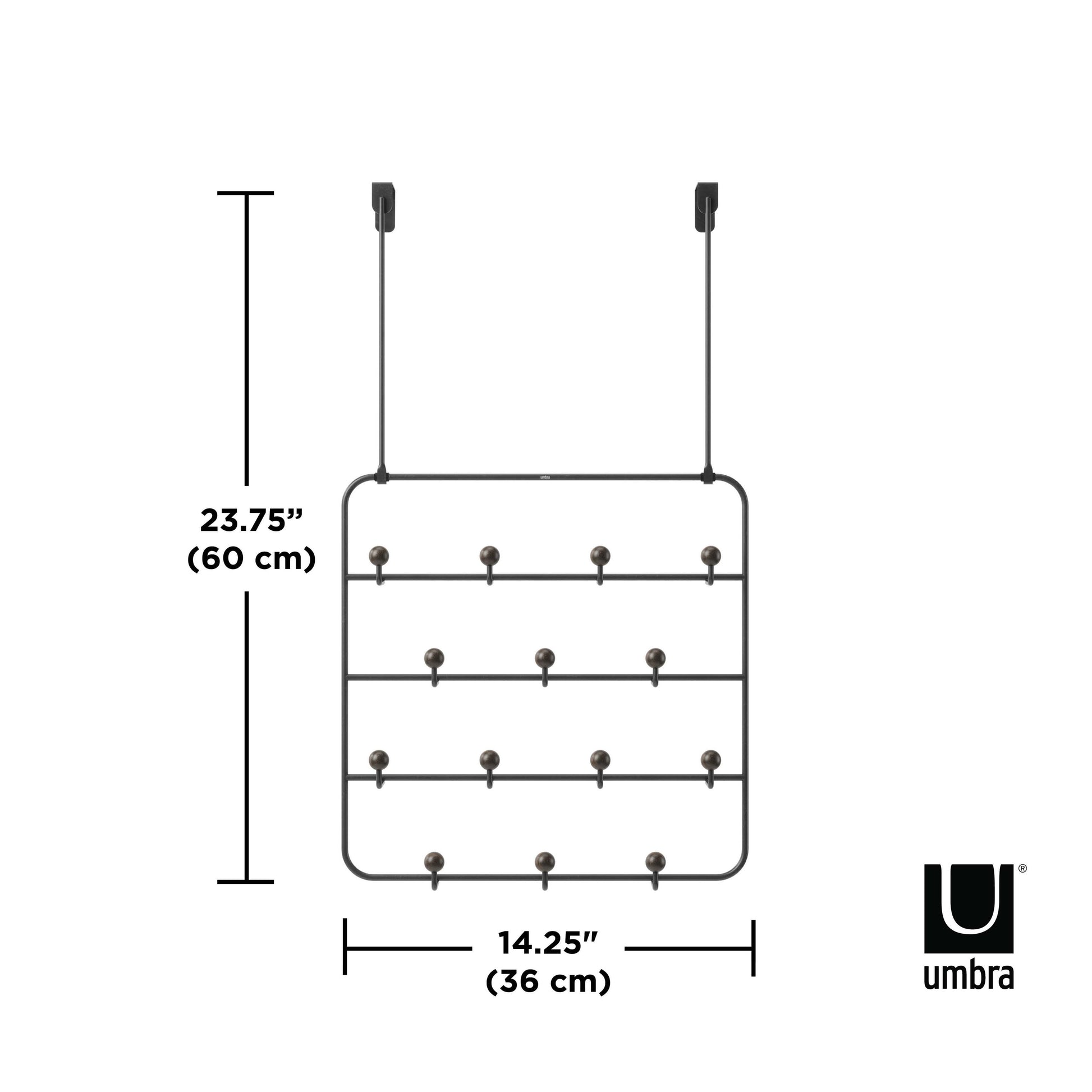 • Fits up to a 3.8 cm thick door• 14 generously spaced hooks allow room for accessories of all sizes and shapes