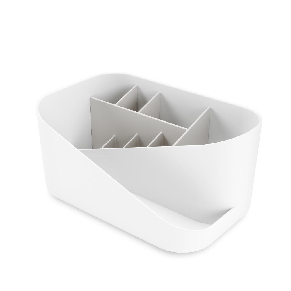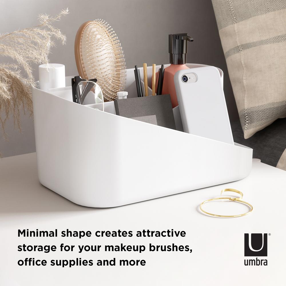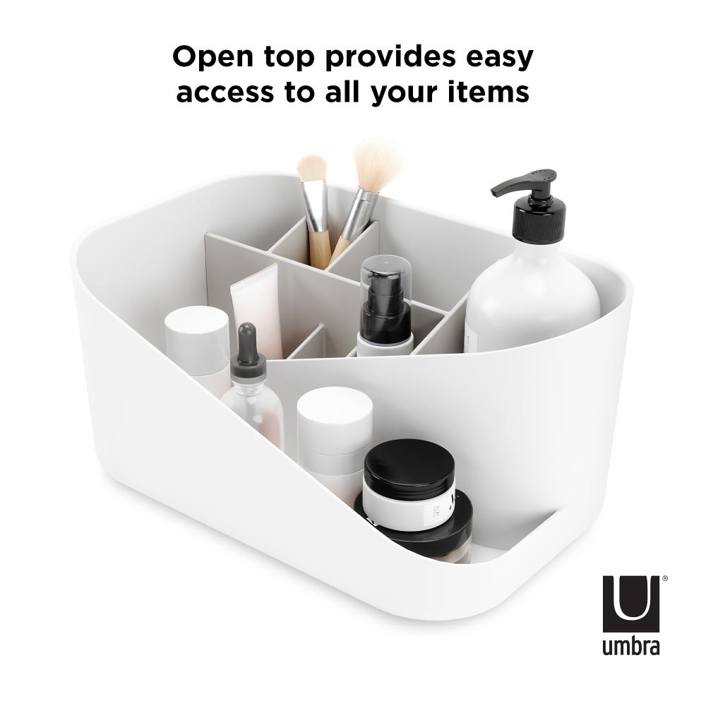 Instantly de-clutter your space with Umbra Glam Cosmetic Organiser. This makeup organiser provides storage for your everyday makeup essentials with different sized storage compartments and a removable insert. With an open-top design, Glam provides easy-access storage, while being able to showcase all of your products. Glam can be placed under the sink or on your vanity or benchtop for space-saving organisation. Pair Glam with its coordinating Hair Tool Organiser for a complete set and great gift.