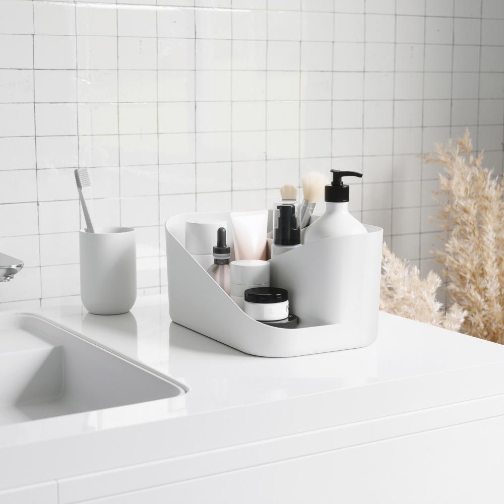 • A versatile makeup organizer, Glam stores and organizes all of your favorite products, while remaining stylish with its simple, modern design