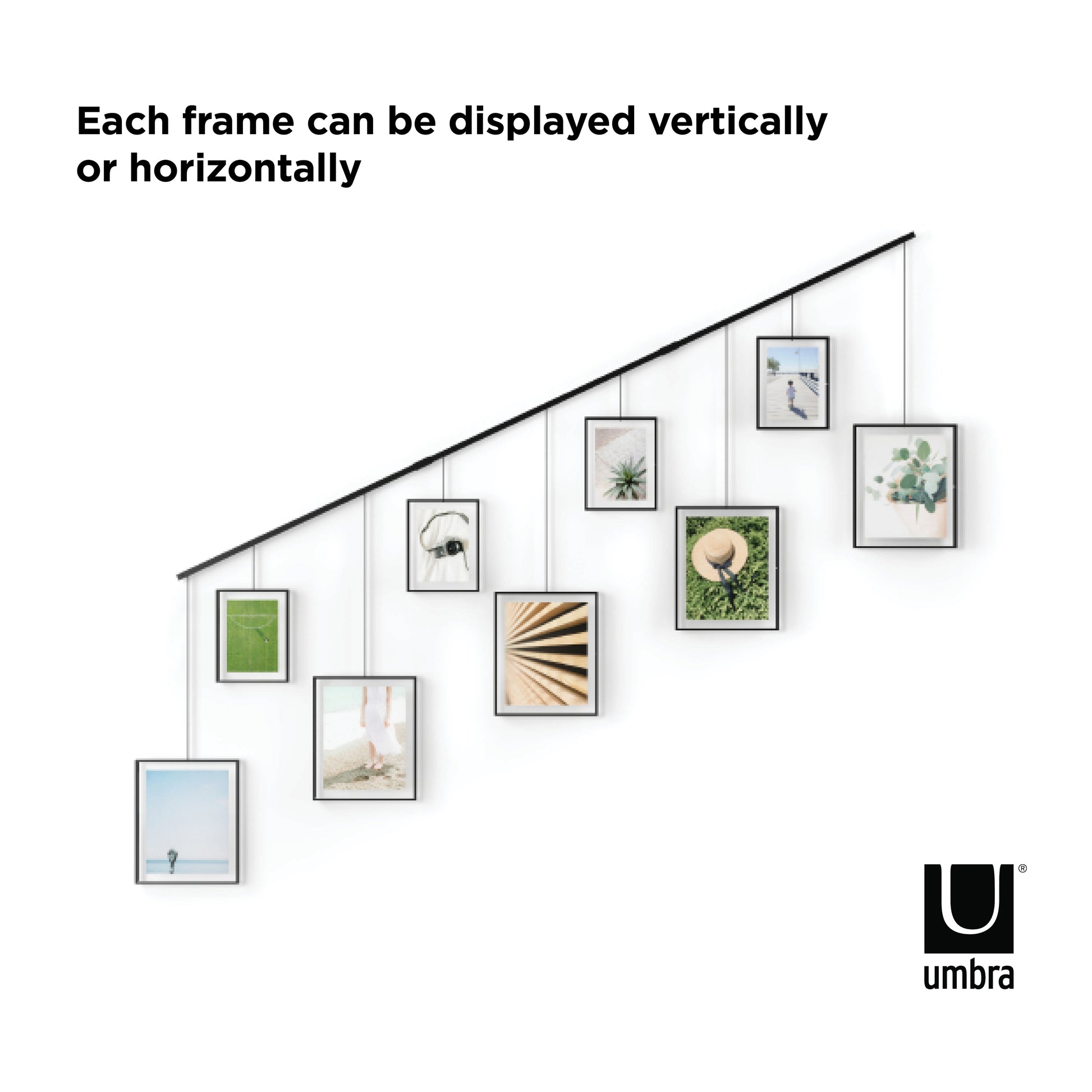 This flexible Umbra Set Of 9 Black Exhibit Frames allows you to manipulate the layout of your photos, making it modern and stylish. Display your treasured memories in this beautiful frame that doubles as wall decor.