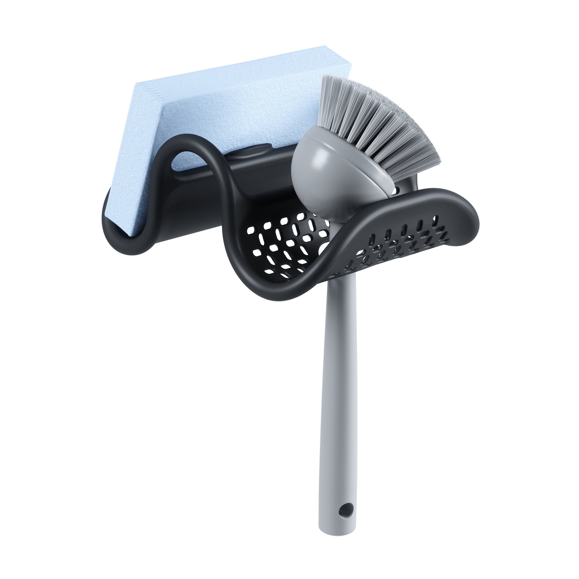 The Umbra Sling Double Sink Caddy is a flexible sink caddy that can bend to fit any sink wall or faucet. Featuring a double-sided wire frame with a flexible moulded coating, its non-slip and elastic properties makes it stay put while you do your dishes. Sling has generous cutouts on both sides for a scrubbing brush and a perforated base, improving drainage and preventing the build-up of moisture, ensuring your sponge or scrubby will stay clean and dry.