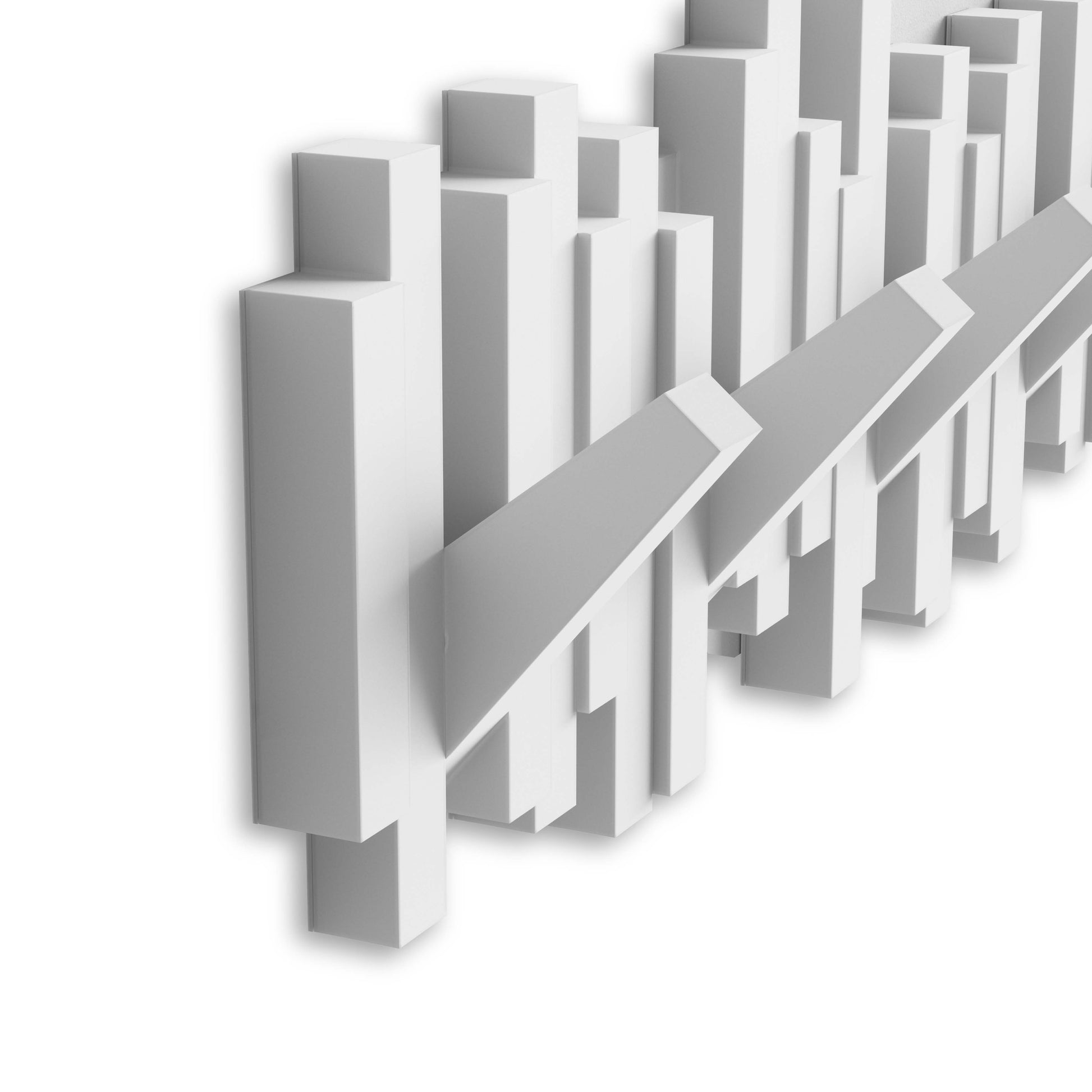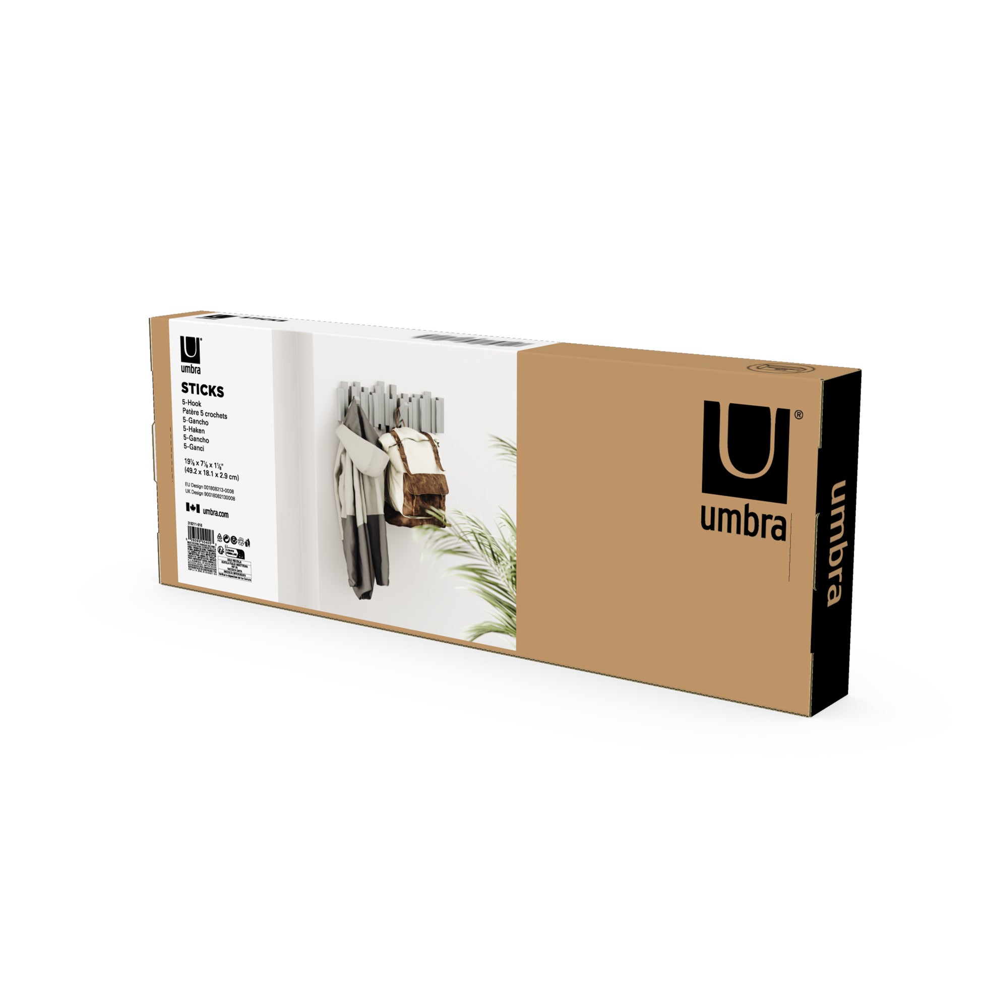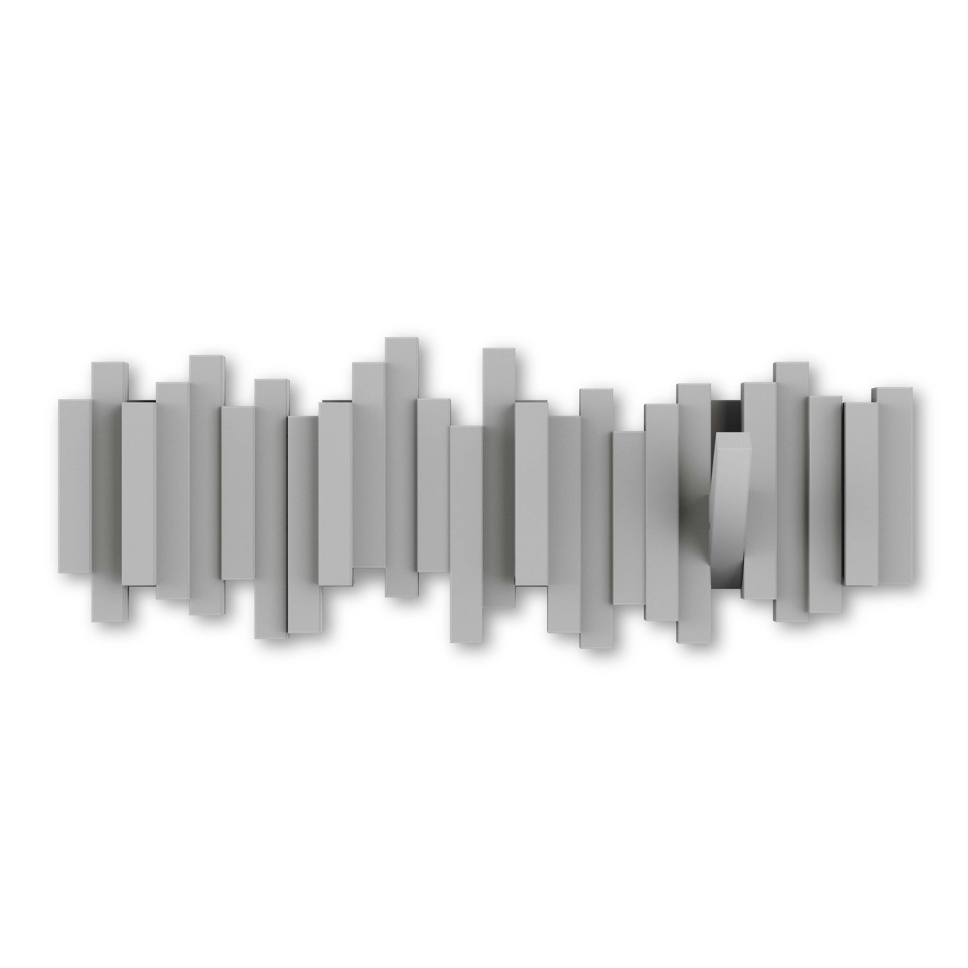 The Umbra Sticks Multi Hook is a sculptural yet functional wall coat rack that will provide you with ample hanging space in virtually every area of your home, office or dorm room. The deceptive design of Sticks looks at first glance like a modern piece of art until it boasts its clever design with 5 flip-down hooks which can be flipped up when not in use, creating a clean, seamless profile.