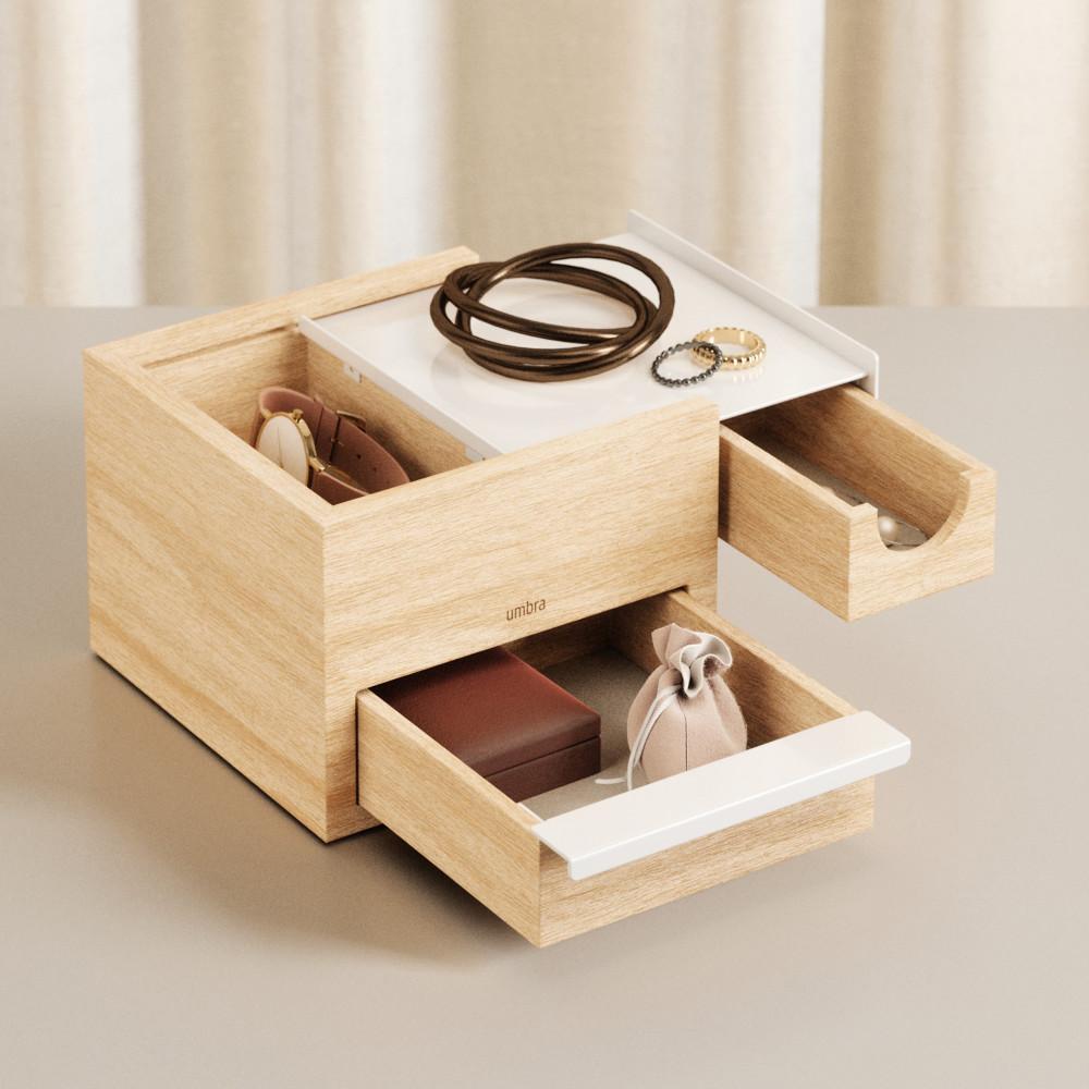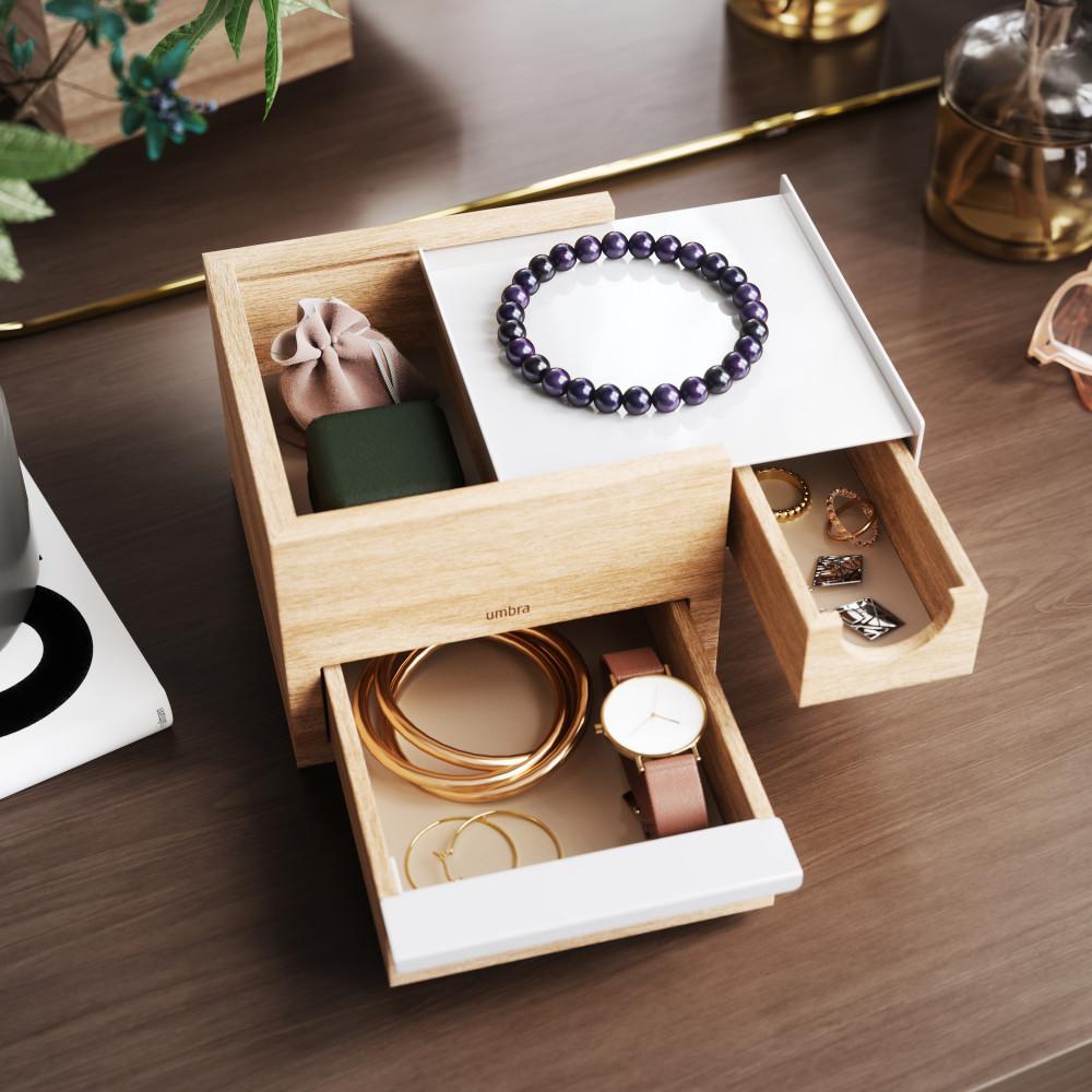 • Place your most frequently used jewellery and accessories on the top surface of Mini Stowit for quick grab-and-go access• Mini Stowit features a covered design with hidden storage compartments that allows your jewellery to be kept private and out of sight