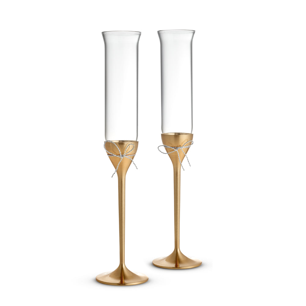 Love Knots Gold Toasting Flute Pair embraces the current gold trends in fashion and home decor with a classic bridal gift collection in the iconic Vera Wang design.