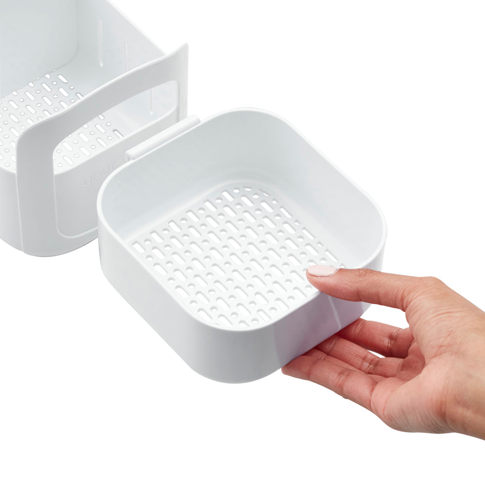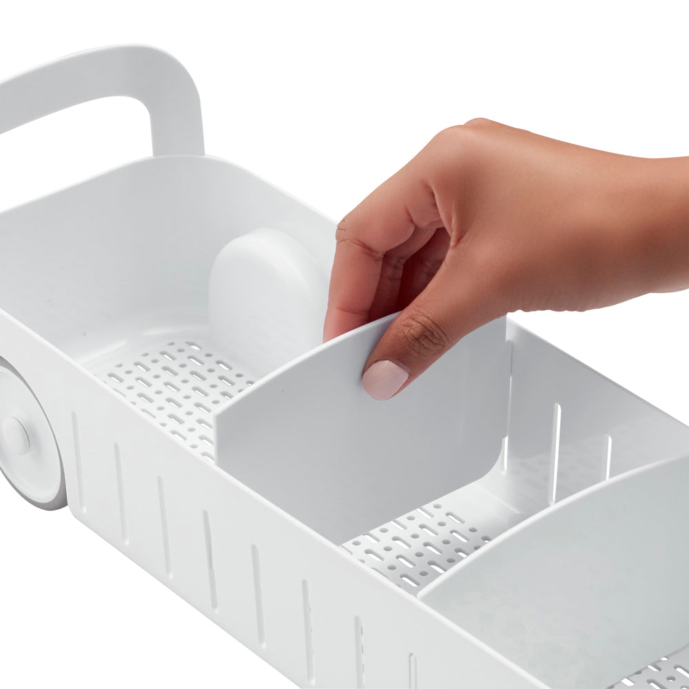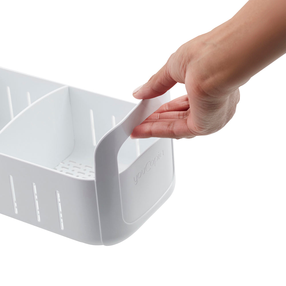 Revolutionise your sink space with the YouCopia RollOut Under Sink Caddy. Tame the chaos beneath your sink as this compact organiser brings order to the clutter. With two adjustable dividers, customise your space for efficient storage of cleaning essentials. Sturdy handles and smooth rolling wheels make access a breeze, even for items tucked away at the back. Supporting up to 13kg, this caddy is a powerhouse, while non-slip feet ensure your cabinet surfaces remain unscathed. Elevate your organisation game with the YouCopia RollOut Under Sink Caddy, available in small and large sizes.