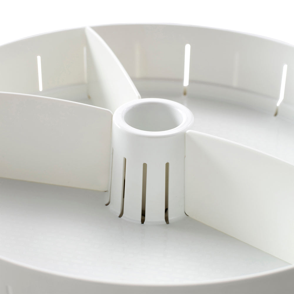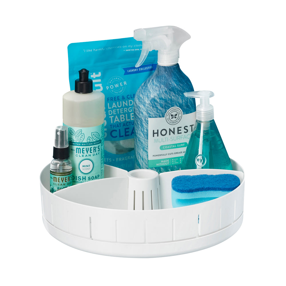 Transform your kitchen organisation with the YouCopia SinkSuite Under Sink Turntable. Say goodbye to the chaos under your sink as this sturdy plastic turntable effortlessly glides 360°, granting easy access to cleaning essentials. Three adjustable dividers provide a customisable solution, keeping bottles, sprays, sponges, and more neatly organized and upright. Streamline your space and transform daily chores into a breeze with this innovative storage solution. Embrace the ease of a clutter-free cupboard with the YouCopia SinkSuite Under Sink Turntable.