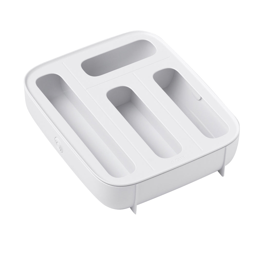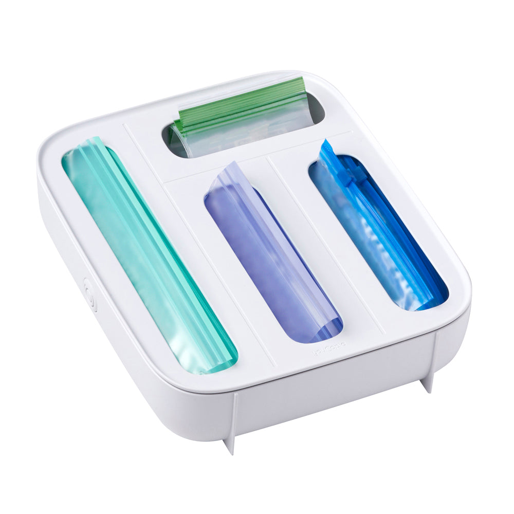 Simplify your kitchen chaos with the YouCopia StoraBag Food Bag Dispenser 4 Slot. Crafted from premium BPA-free plastic, this robust organiser stores your food storage bags with finesse. Four compartments cater to bags of all sizes, from snack pouches to large storage giants. The removable top lid ensures a seamless reloading experience, while the 24 included labels make it easy to identify bag size. Whether nestled in a drawer or standing in a cabinet, this dispenser transforms bag clutter into organised bliss. Elevate your kitchen efficiency with the ingenious YouCopia StoraBag Food Bag Dispenser 4 Slot.