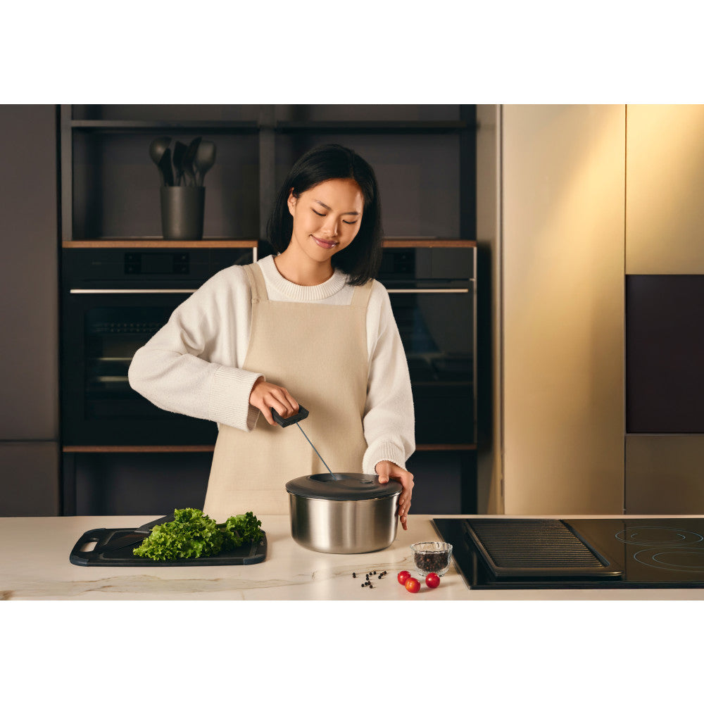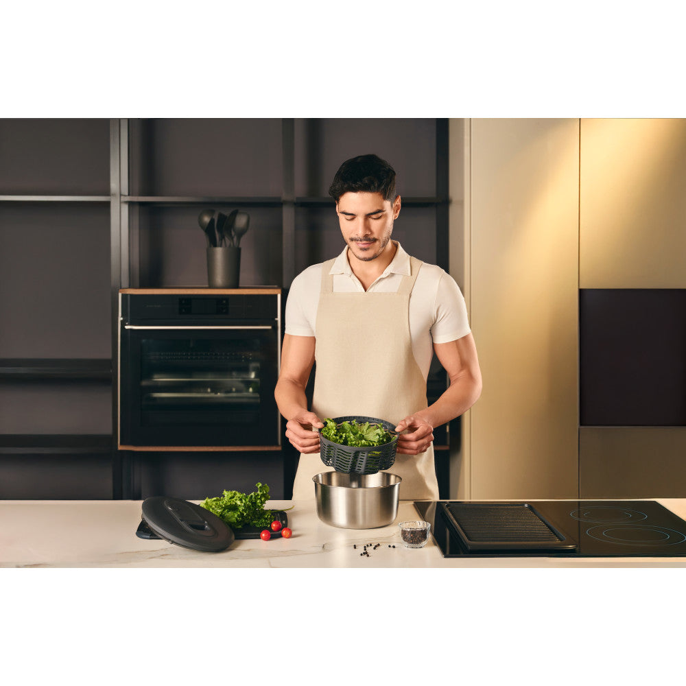 The Zyliss Easy Spin Stainless Steel Salad Spinner is designed to make salad prep a breeze. Whether quickly drying greens for a light lunch or preparing veggies for a hearty dinner, this spinner effortlessly removes excess water in seconds—leaving you with perfectly crisp, fresh ingredients every time. Its thoughtful design allows you to easily pour off the water without making a mess, while the foldable handle ensures it stores away neatly in your kitchen. The stainless steel bowl doubles as a serving dish.