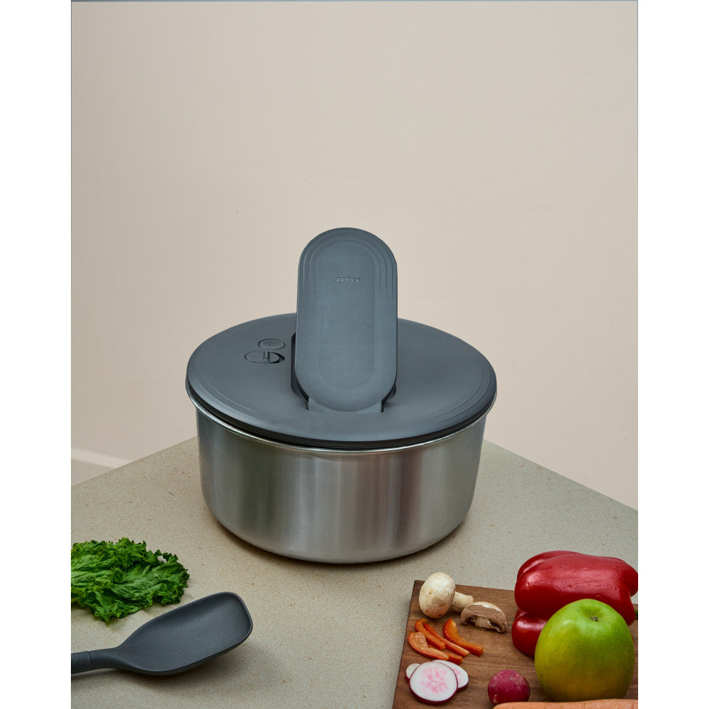 The Zyliss Swift Dry Stainless Steel Salad Spinner makes everyday salad preparation effortless while adding style to your kitchen. With its smooth pump-action spin, it quickly dries greens in seconds—ideal for quick lunches, weeknight dinners, or preparing portions for two. The sleek stainless steel bowl is a durable and stylish addition to any kitchen, allowing you to transition easily from prep to serving at the table without changing dishes.