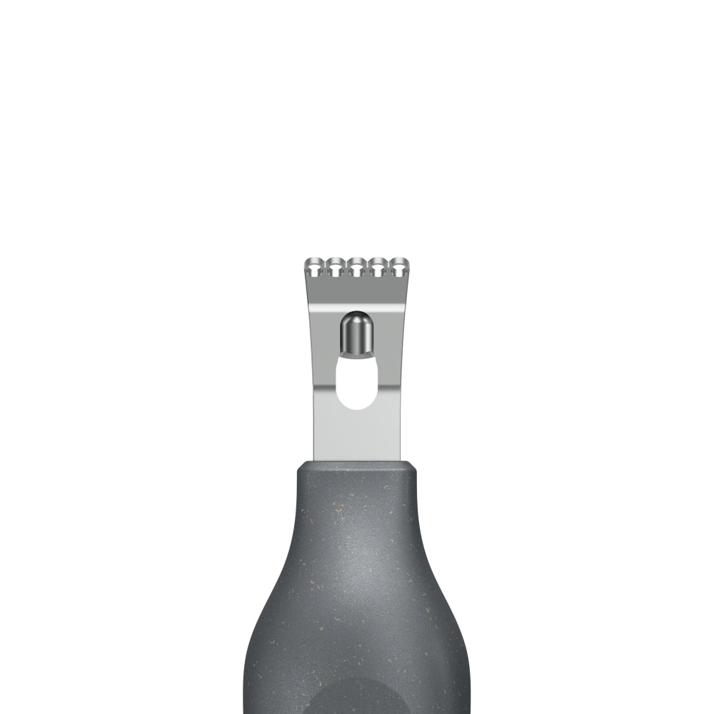 The Zyliss 2 in 1 Zester is uniquely designed with an ergonomic handle for maximum output and control. As well as efficiently zesting citrus fruits, the addition of a channel knife cuts thicker strips of citrus rind for cocktails and desserts. The citrus zester is perfect for right or left-handed use and the hardened stainless steel blade stays sharp to zest citrus fruits easily. It also features a eco handle that is made from up to 50% wheat straw material.
