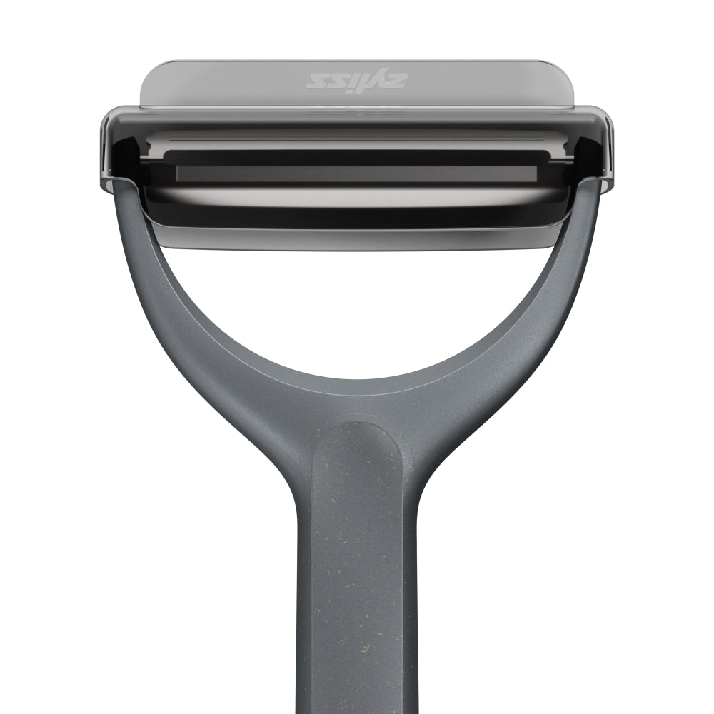 The Zyliss Wide Peeler features a sharp, stainless steel blade glides through even the toughest of fruit and vegetable skins with ease. The extra wide blade makes easy work of peeling large, tough vegetables such as pumpkin, sweet potato, eggplant & more. It is also perfect for shredding cabbage (for coleslaw) & iceberg lettuce. It also features a blade cover for safer storage. The ergonomic eco handle is made from up to 50% wheat straw material.